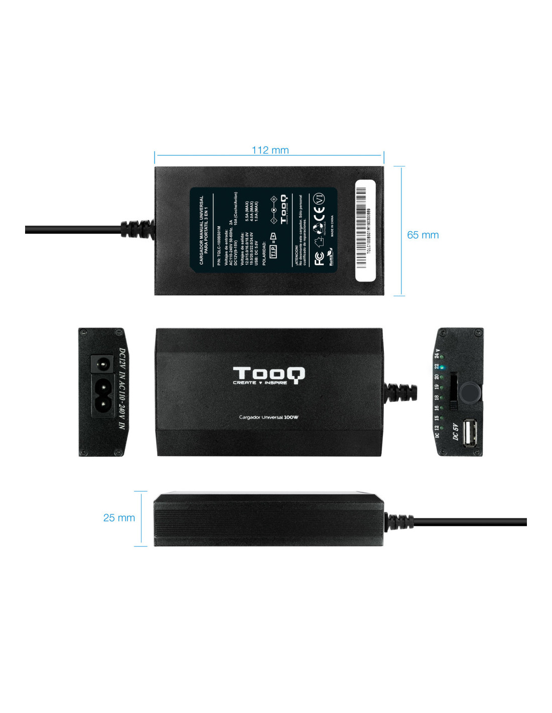 TooQ TQLC-100BS01M Adaptador i inversor de potència Automàtic/Interior 100 W Negre