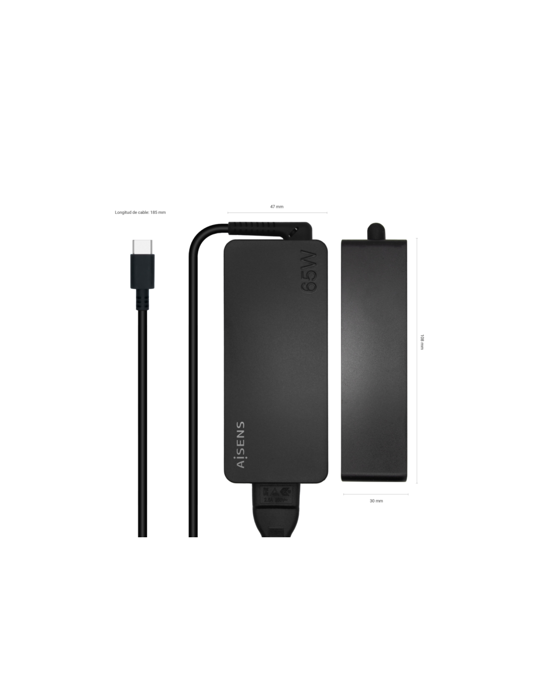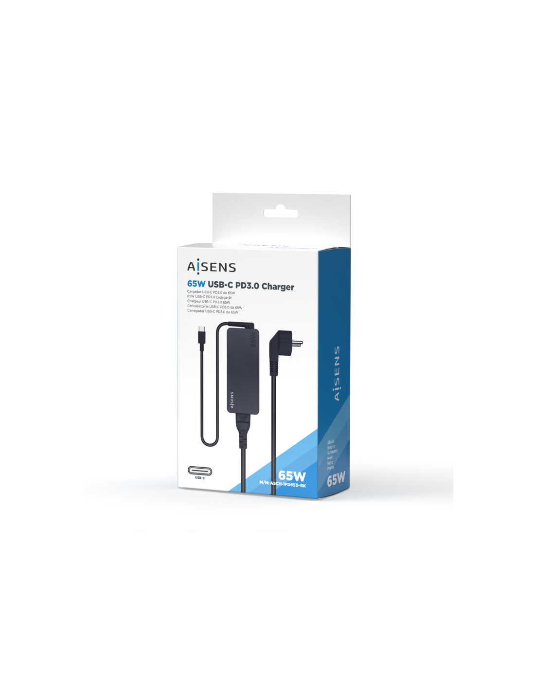 AISENS® – Cargador 65W PD3.0 1XUSB-C 1.2M, Negro