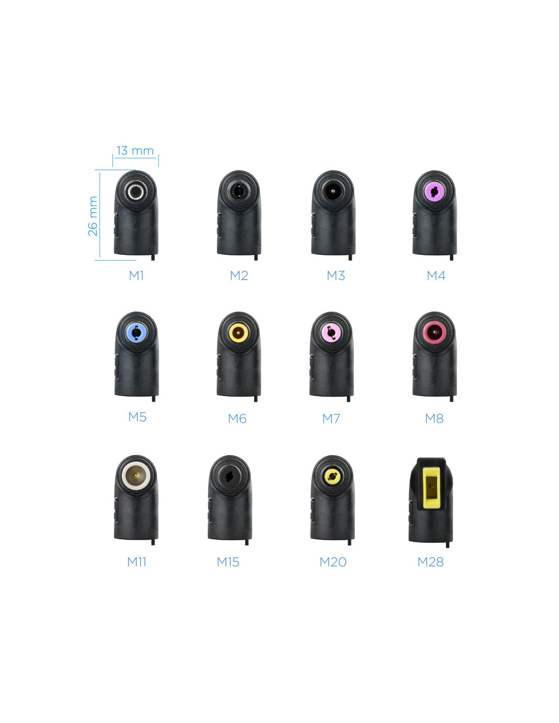 - 12 Conectores intercambiables DC para asegurar una máxima compatibilidad de portátiles