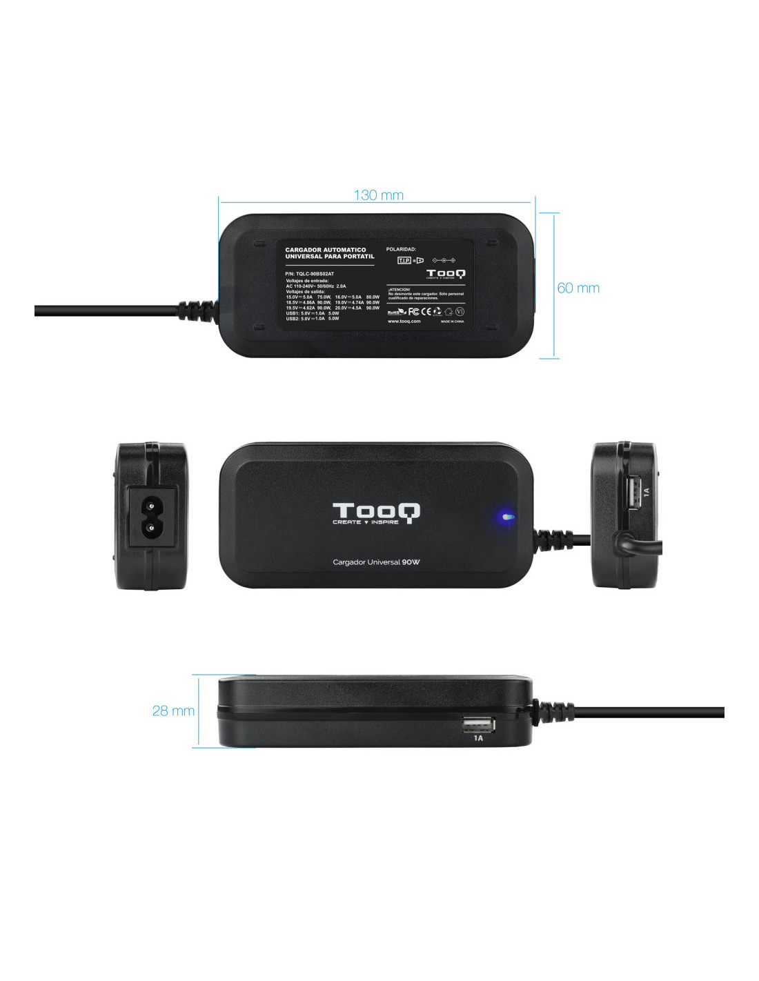 TooQ TQLC-90BS02AT Adaptador i inversor de potència Interiors 90 W Negre