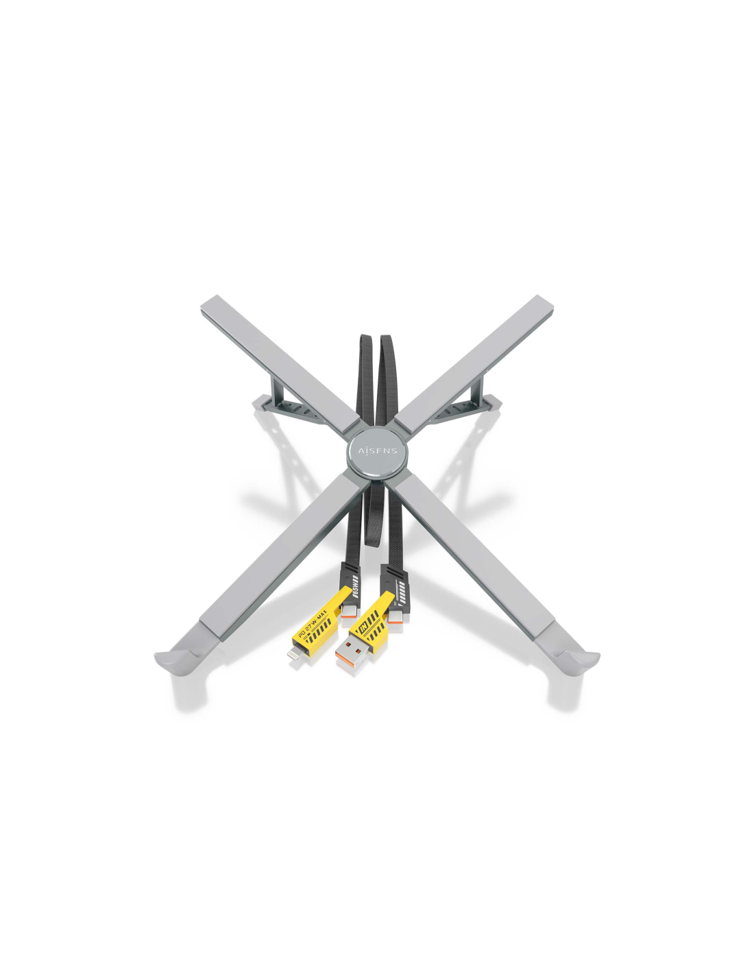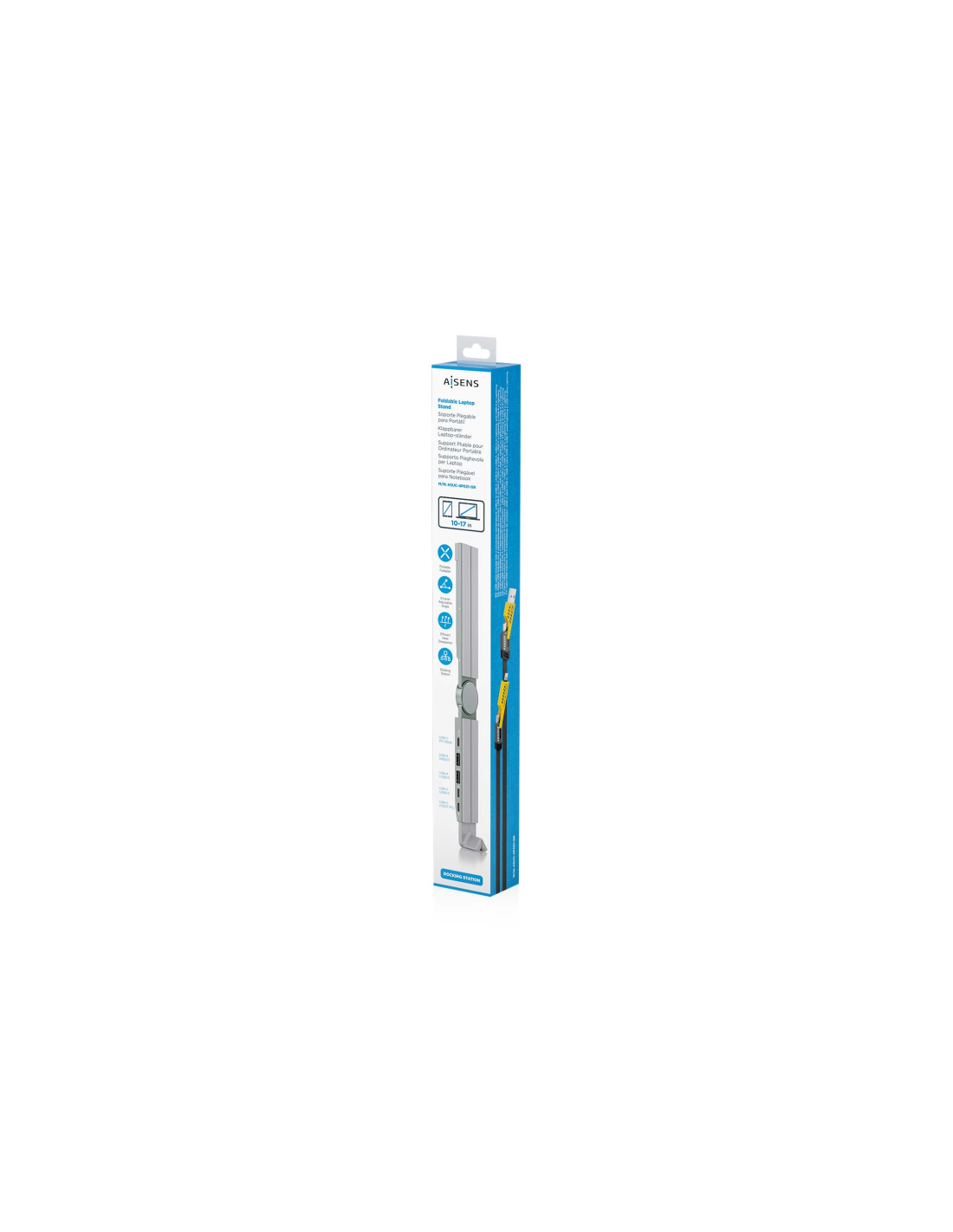 AISENS Soporte de Sobremesa Ajustable Para Portail / Tablet Con USB-C Docking 4 en 1, Gris. Tecnología de conectividad: Alámbrico, Interfaz de host: USB 3.2 Gen 1 (3.1 Gen 1) Type-C, Entrega de energía USB (USB Power Delivery) de hasta: 100 W. Color del producto: Gris. Alimentación: USB, Conector eléctrico: USB Tipo C. Cantidad por paquete: 1 pieza(s), Ancho del paquete: 43 mm, Profundidad del paquete: 328 mm. Cables incluidos: USB Type-A to Lightning, USB Type-C to Lightning, USB tipo C a USB tipo A, USB t