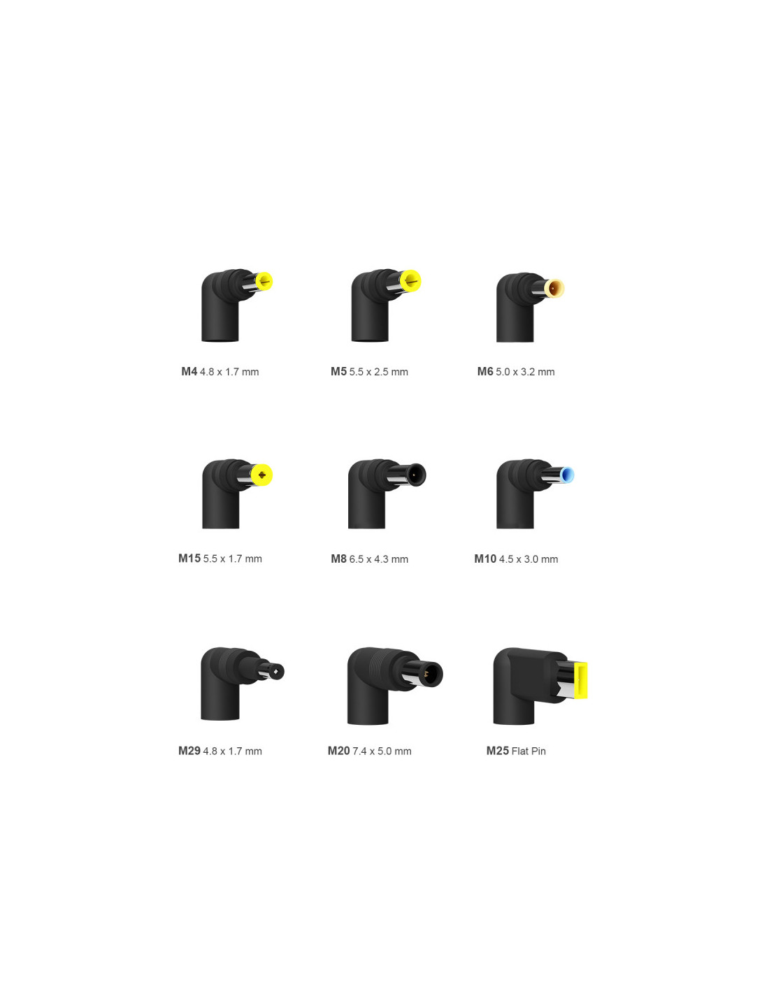 - M5 : 19V / 5.5*2.5mm / Acer, ASUS, Dell, Delta, Toshiba, HP, Liteon, Nec, Gateway