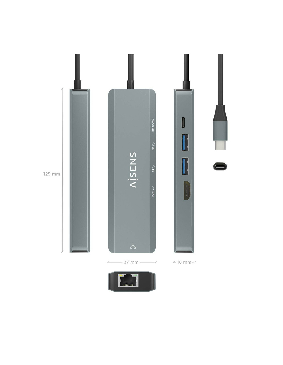 AISENS ASUC-5P011-GR Replicador de port i moll portàtil Cablejat USB 3.2 Gen 1 (3.1 Gen 1) Type-C Gris