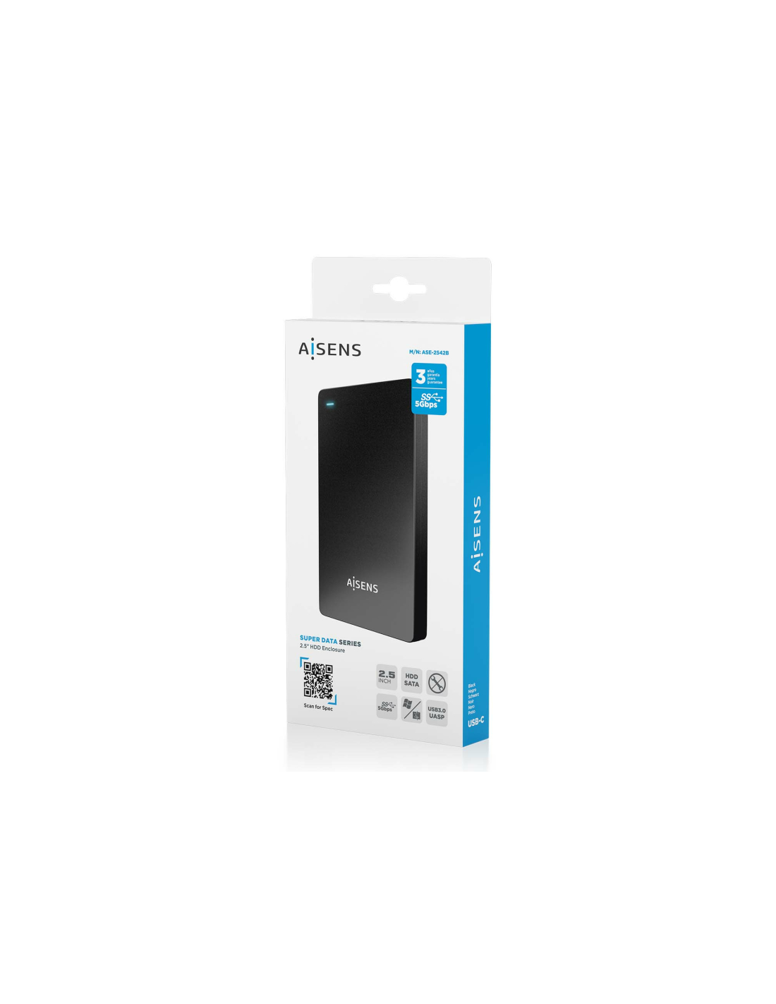 AISENS Caja Externa 2.5? 9.5mm SATA a USB-C USB3.1 Gen1, Negra. Tipo de producto: Caja de disco duro (HDD). Número de unidades de almacenamiento compatibles: 1, Tamaño de la unidad de almacenamiento: 2.5", Interfaces de disco de almacenamiento soportados: SATA, Serial ATA II, Serial ATA III, Capacidad máxima de almacenaje: 2 TB. Velocidad de transferencia de datos: 5 Gbit/s. Color del producto: Negro. Conector USB: USB Tipo C