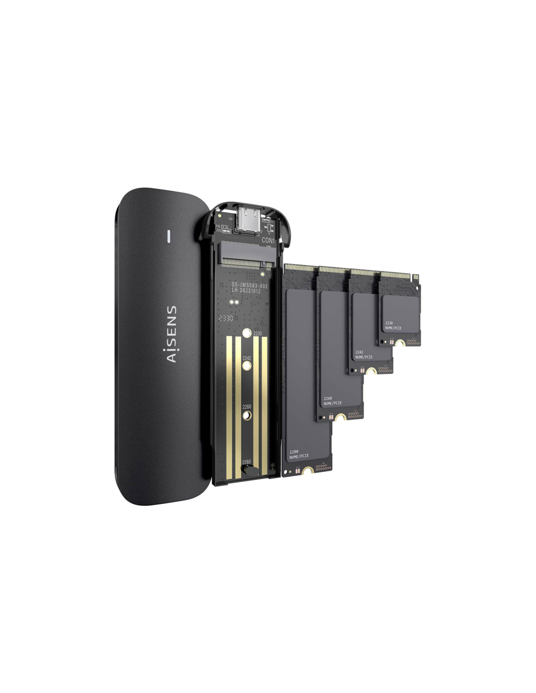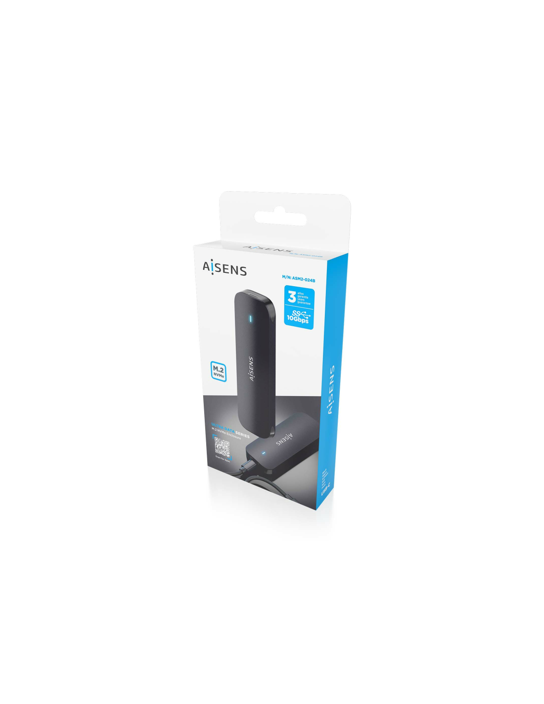 AISENS Caja Externa M.2 (NGFF) ASM2-024B NVMe a USB3.2 Gen2, Negra. Tipo de producto: Caja externa para unidad de estado sólido (SSD). Número de unidades de almacenamiento compatibles: 1, Tamaño de la unidad de almacenamiento: M.2, Interfaces de disco de almacenamiento soportados: M.2, Capacidad máxima de almacenaje: 2 TB. Velocidad de transferencia de datos: 10 Gbit/s. Color del producto: Negro. Conector USB: USB Tipo C