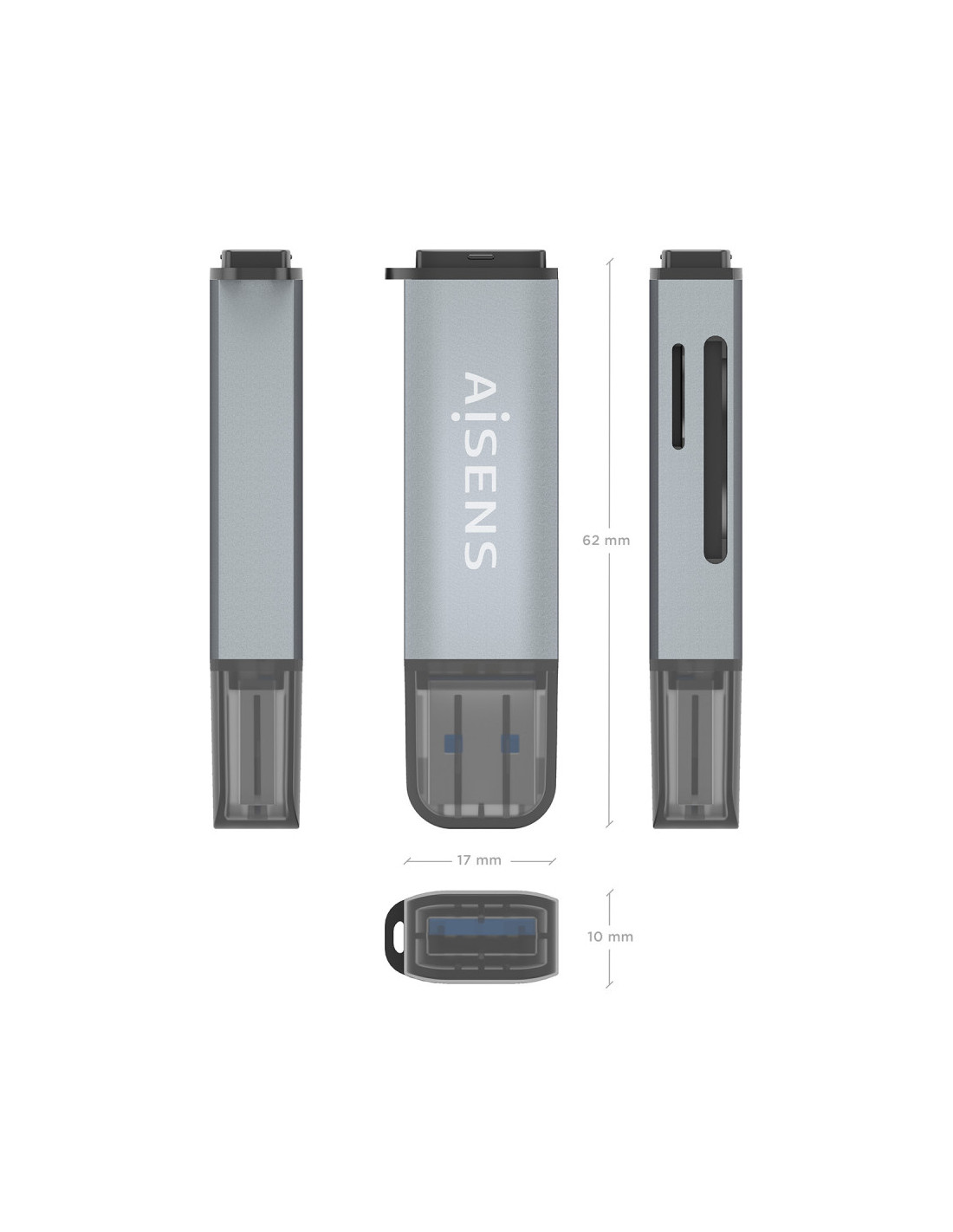 AISENS ASCR-2A09-GR Lector de targetes USB 3.2 Gen 1 (3.1 Gen 1) Type-A Gris