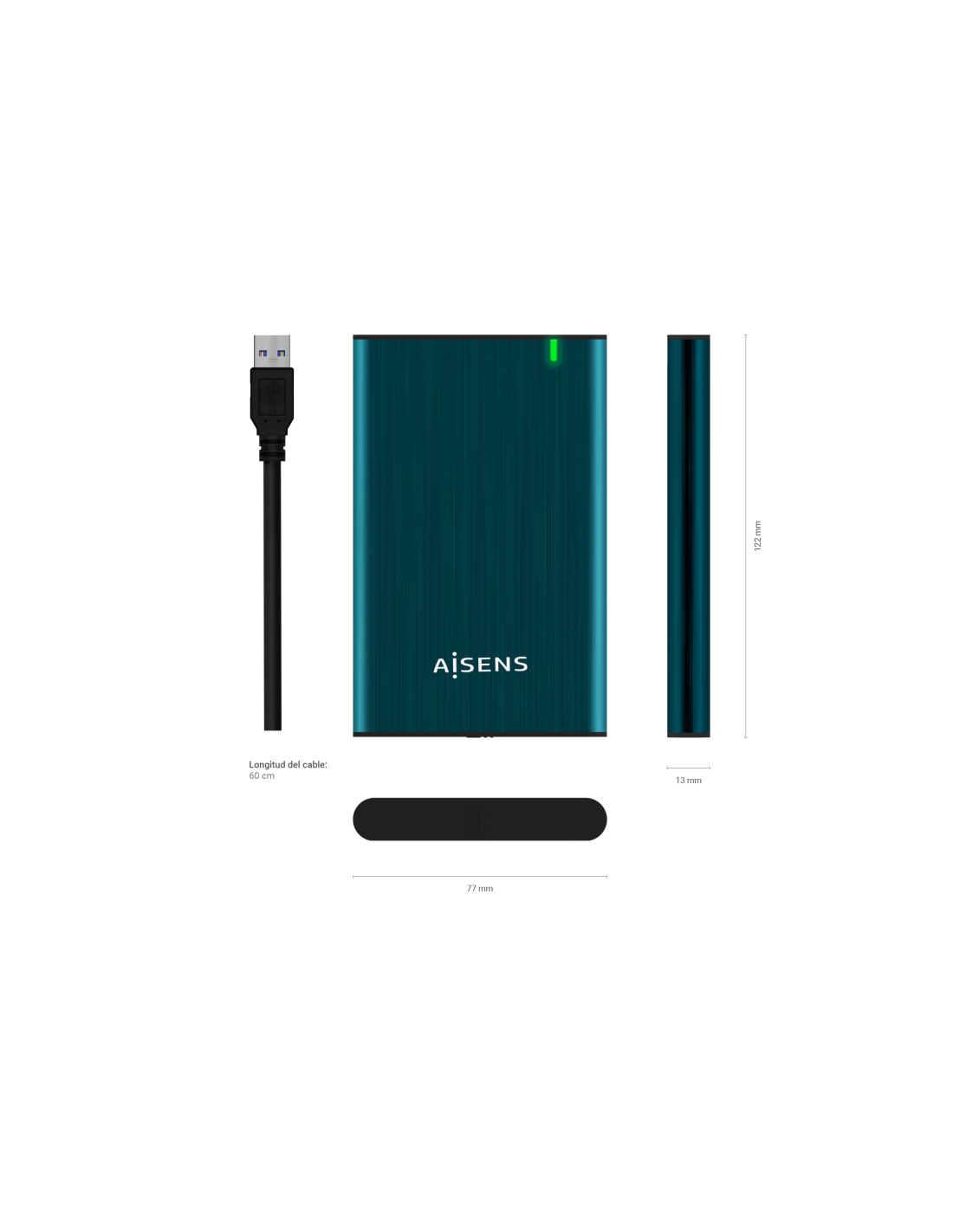 Conexión USB 3.0 (USB3.1 GEN1), ofrece una velocidad de transferencia de hasta 5.0Gbps. Incluye un LED para indicar el estado de conexión y acceso a disco duro.