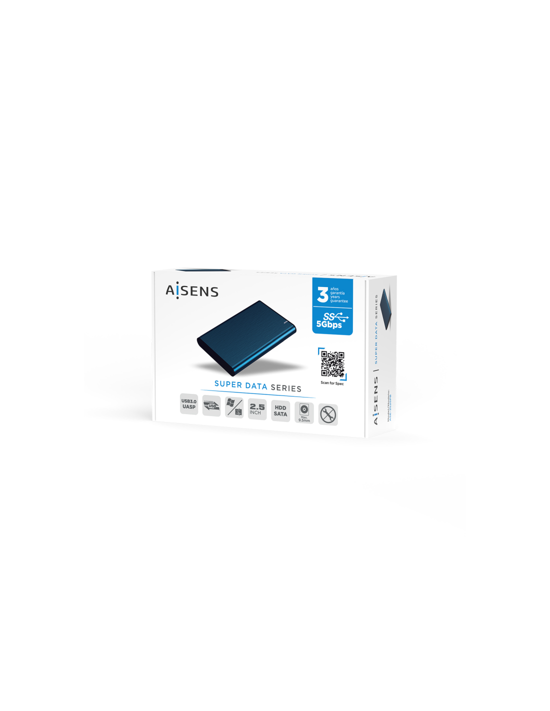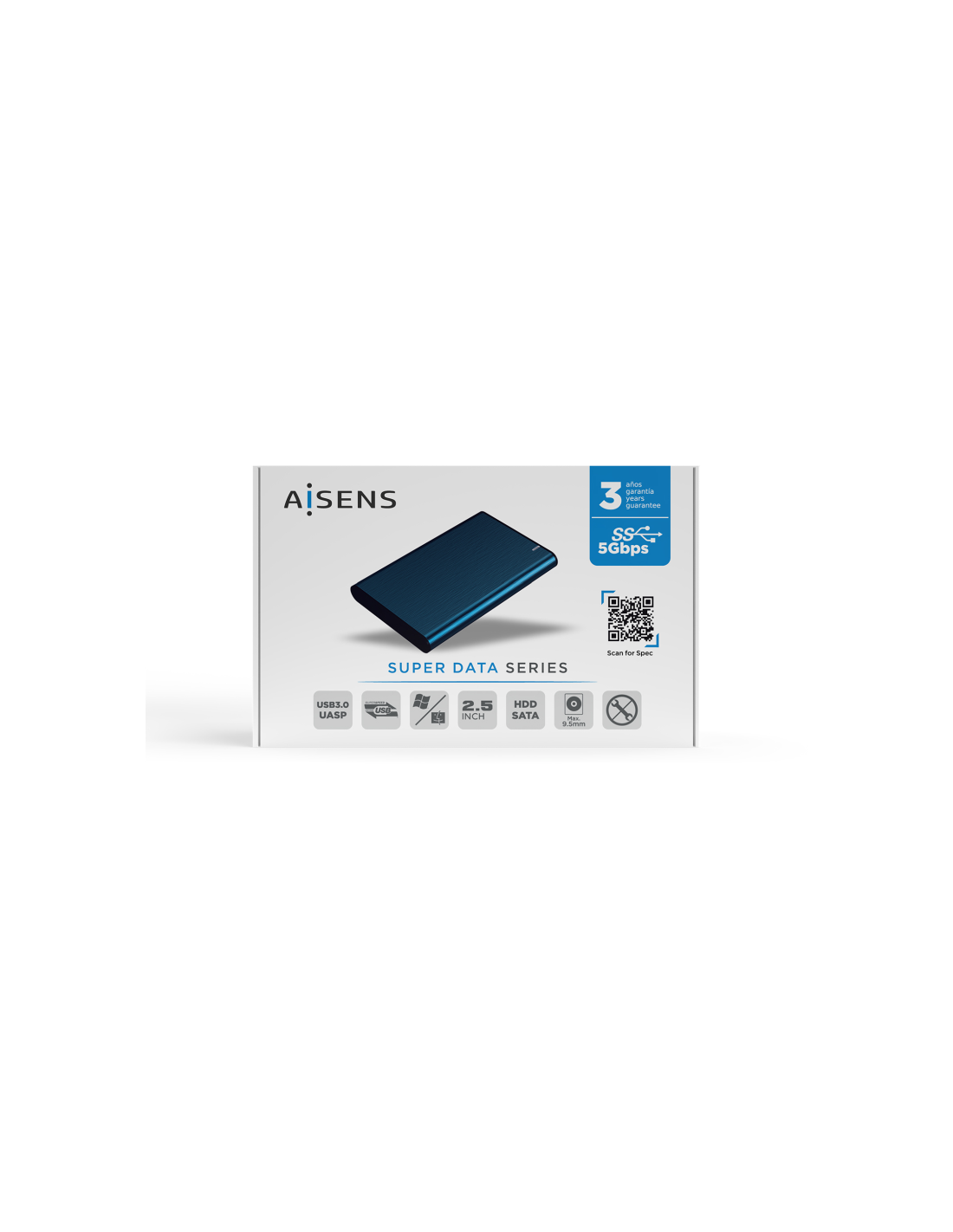 AISENS Caja Externa 2.5" ASE-2525PB 9.5 mm SATA A USB 3.0/USB 3.1 Gen1, Azul Pacifico