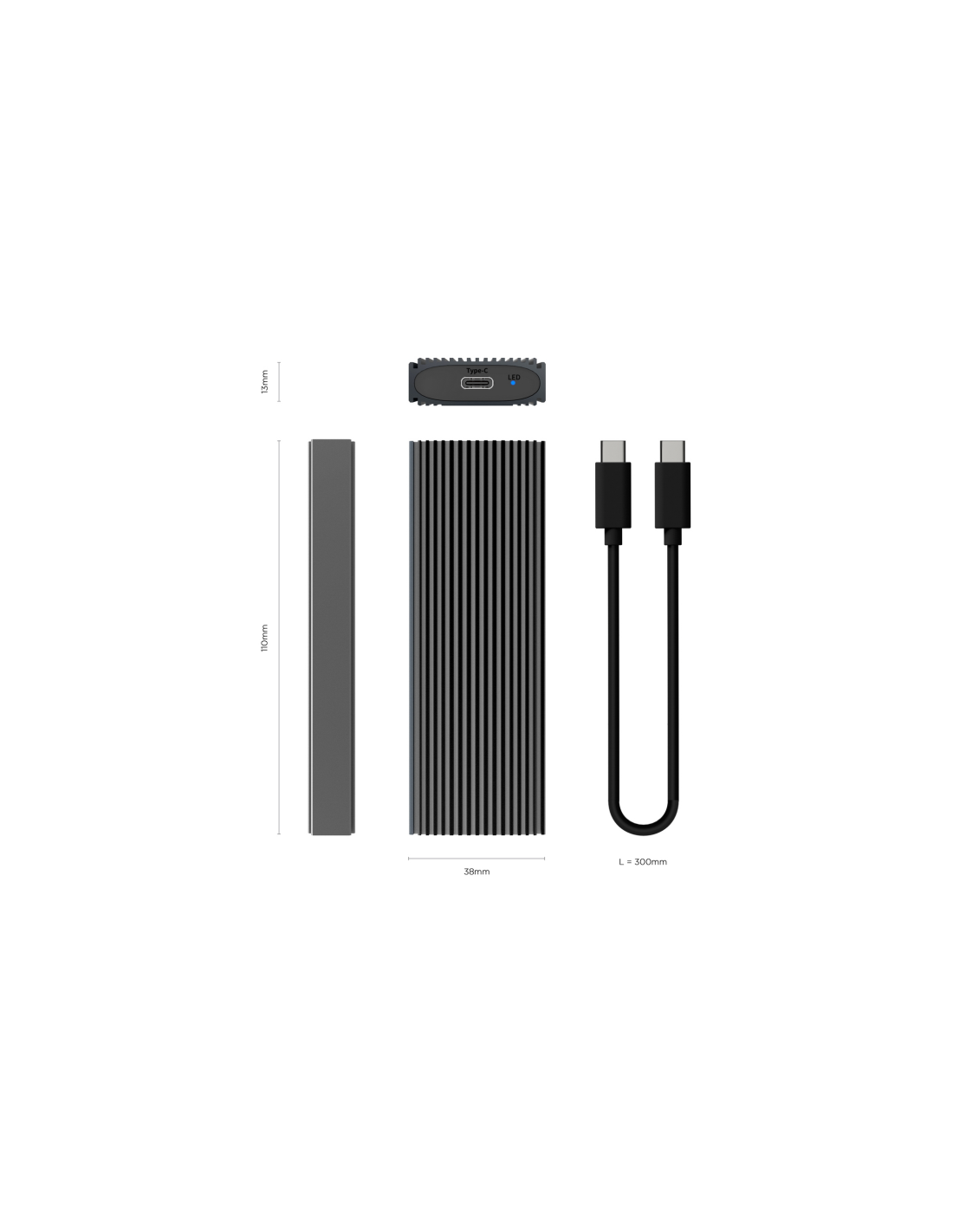 AISENS Caja Externa M.2 (NGFF) ASM2-023GR NVMe A USB3.2 Gen2, Gris. Tipo de producto: Caja externa para unidad de estado sólido (SSD). Número de unidades de almacenamiento compatibles: 1, Tamaño de la unidad de almacenamiento: M.2, Interfaces de disco de almacenamiento soportados: M.2, Capacidad máxima de almacenaje: 2 TB. Velocidad de transferencia de datos: 10 Gbit/s. Color del producto: Gris. Conector USB: USB Tipo C
