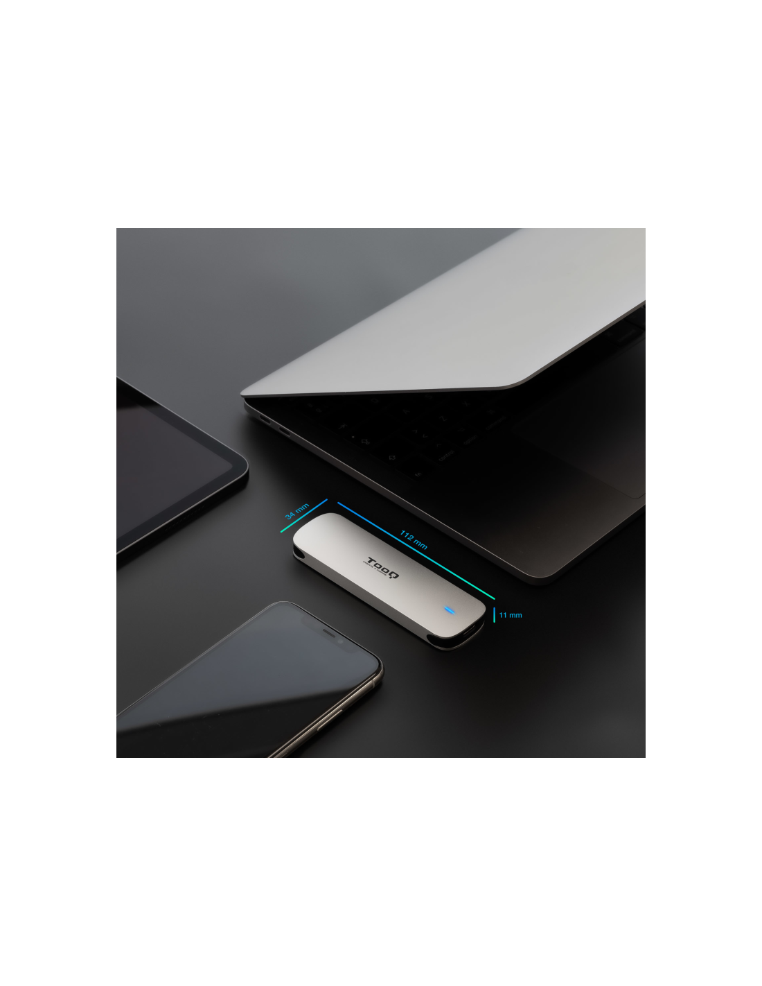 TooQ Caja Externa para SSD M.2 NGFF, Plata. Tipo de producto: Caja externa para unidad de estado sólido (SSD). Número de unidades de almacenamiento compatibles: 1, Tamaño de la unidad de almacenamiento: M.2, Interfaces de disco de almacenamiento soportados: SATA. Velocidad de transferencia de datos: 5 Gbit/s. Color del producto: Plata. Conector USB: USB Tipo C