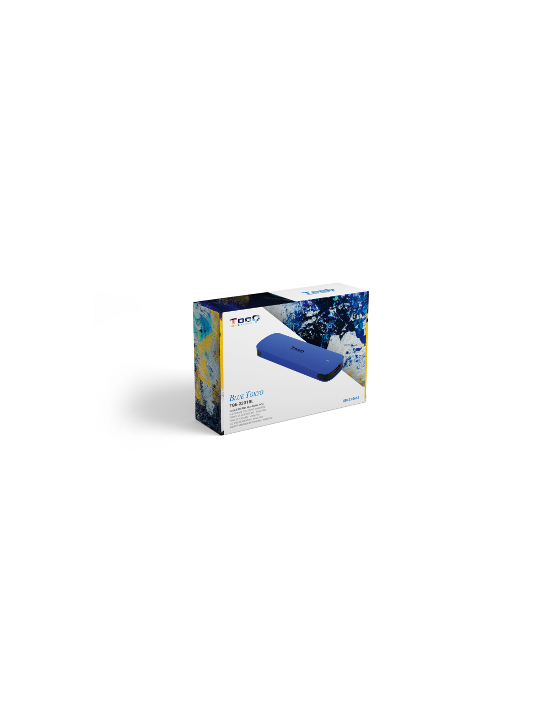 TooQ Caja externa para SSD M.2 NVMe, Azul. Tipo de producto: Caja externa para unidad de estado sólido (SSD). Número de unidades de almacenamiento compatibles: 1, Tamaño de la unidad de almacenamiento: M.2, Interfaces de disco de almacenamiento soportados: PCI Express. Velocidad de transferencia de datos: 10 Gbit/s. Color del producto: Azul. Conector USB: USB Tipo C
