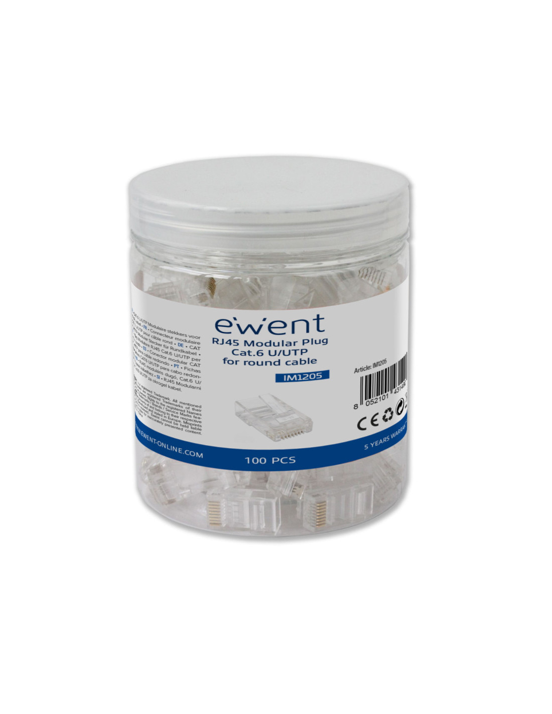 Usa el conector RJ-45 modular IM1206 para ensamblar su propio cable de conexión UTP CAT6. El conector es adecuado para cables redondos rígidos AWG 23-26.