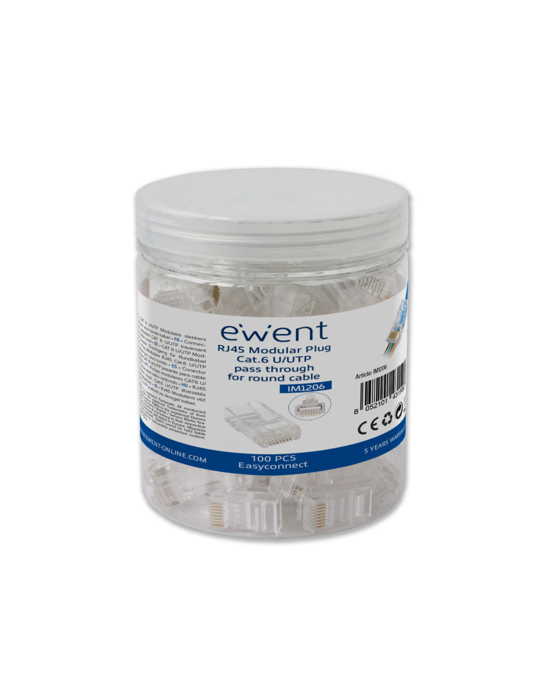 Usa el conector RJ-45 modular IM1206 para ensamblar su propio cable de conexión UTP CAT6. El conector es adecuado para cables redondos rígidos AWG 23-26. Con el IM1206, simplifique y acelere las terminaciones colocando y cortando todos los cables en un solo movimiento.