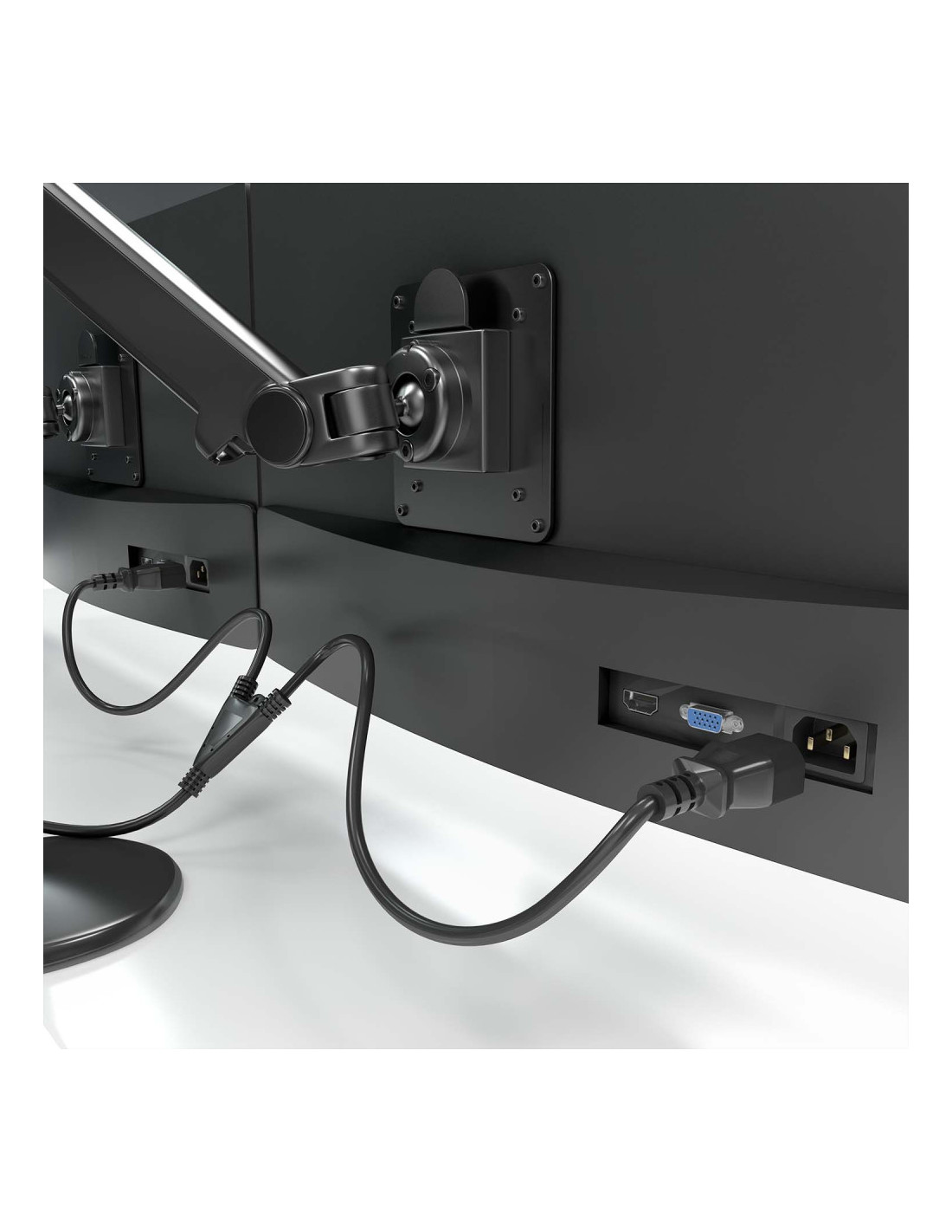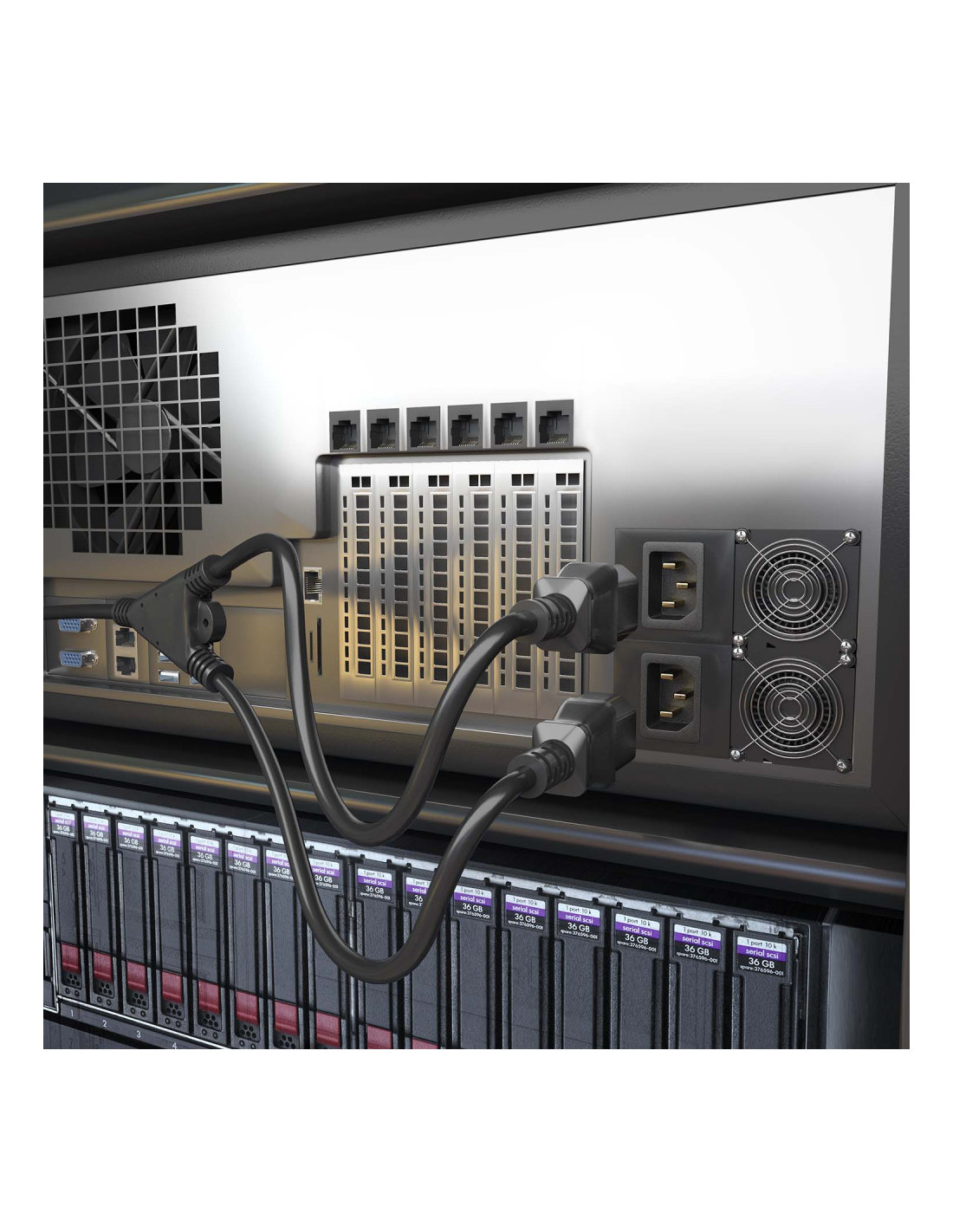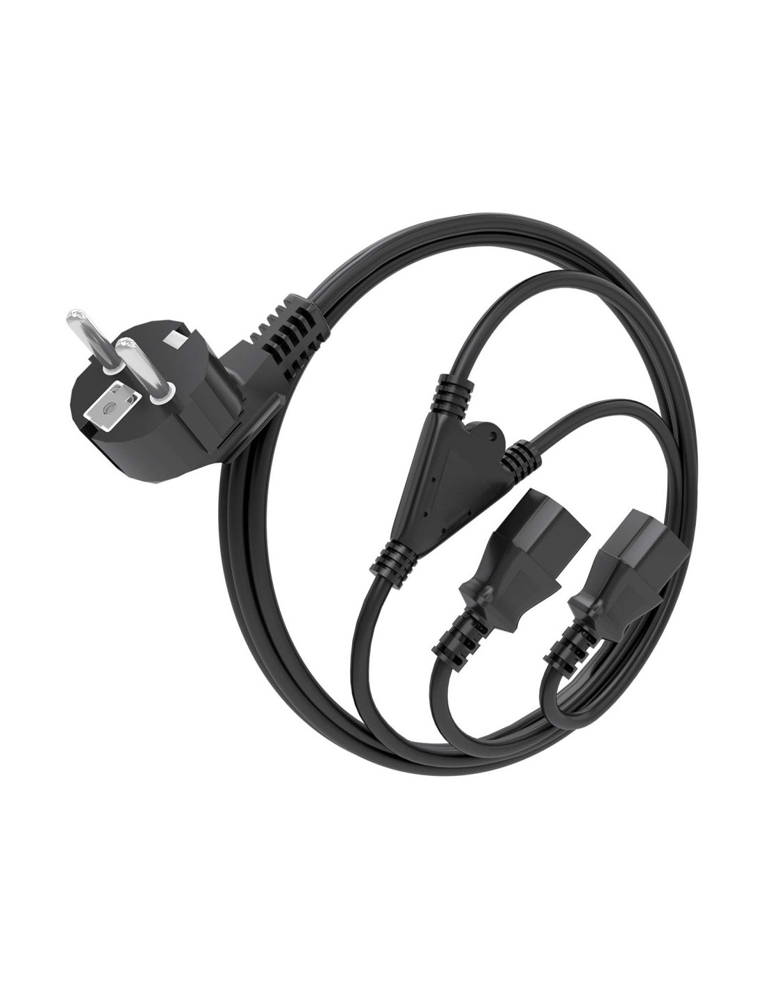 Cable alimentación para CPU con conector CEE7 macho en un extremo y dos conectores C13 hembra en los otros.