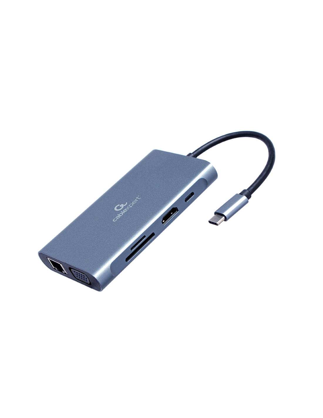 Gembird A-CM-COMBO7-01. Interfaz de host: USB 3.2 Gen 1 (3.1 Gen 1) Type-A, Entrega de energía USB (USB Power Delivery) de hasta: 100 W. Color del producto: Gris, Tarjetas de memoria compatibles: MicroSD (TransFlash), SD, Máxima velocidad de actualización: 30 Hz. Fuente de alimentación: 100 W, Tipo de fuente de alimentación: USB, Consumo energético: 0,5 W. Ancho: 130 mm, Profundidad: 198 mm, Altura: 56 mm. Ancho del paquete: 85 mm, Profundidad del paquete: 190 mm, Altura del paquete: 21 mm