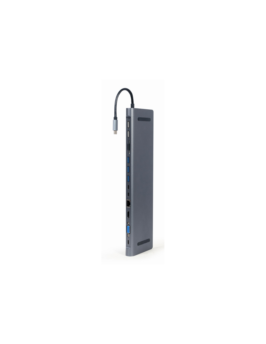 Gembird A-CM-COMBO9-01. Interfaz de host: USB 3.2 Gen 1 (3.1 Gen 1) Type-C, Entrega de energía USB (USB Power Delivery) de hasta: 60 W. Ethernet LAN, velocidad de transferencia de datos: 10,100,1000 Mbit/s. Color del producto: Gris, Tarjetas de memoria compatibles: MicroSD (TransFlash), SD, Interfaces de concentradores: 3?5mm, HDMI, RJ-45, USB 2.0, USB 3.2 Gen 1 (3.1 Gen 1) Type-A, USB Tipo C, VGA. Fuente de alimentación: 60 W, Tipo de fuente de alimentación: USB. Ancho: 84 mm, Profundidad: 294 mm, Altura: