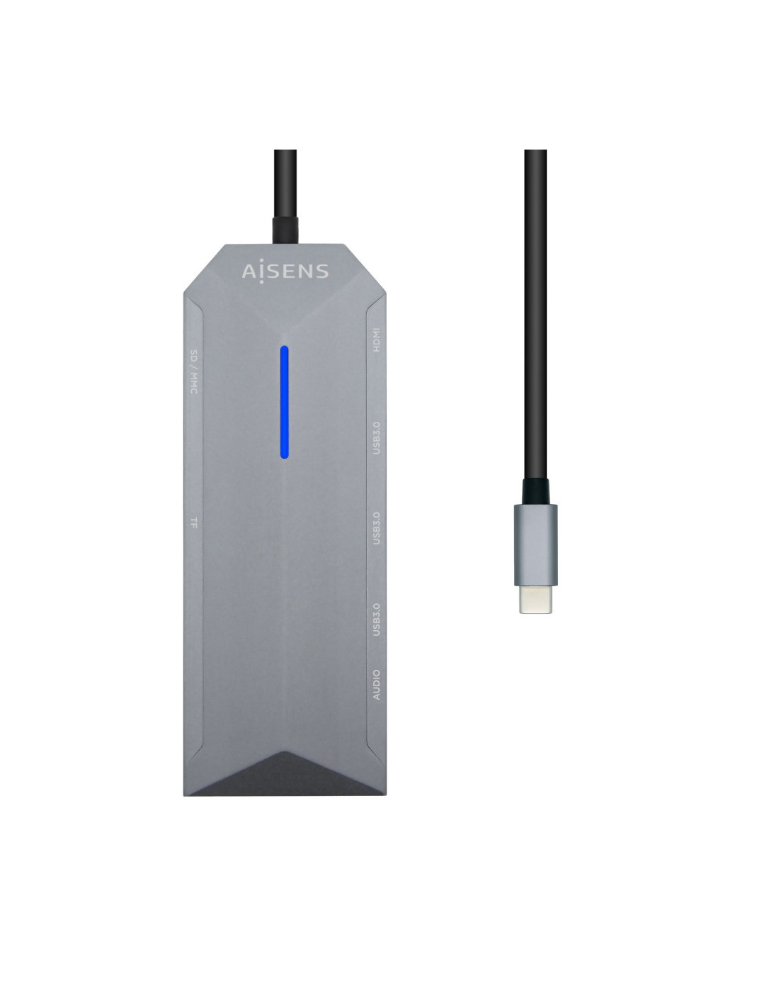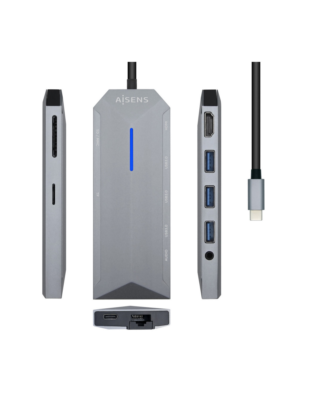 Conversor USB-C a 1xHDMI, 1xRJ45, 3xUSB, 1xPD 100W, 1xAUDIO 3.5mm, 1xLector de tarjeta SD, 1xLector de tarjeta MICRO SD