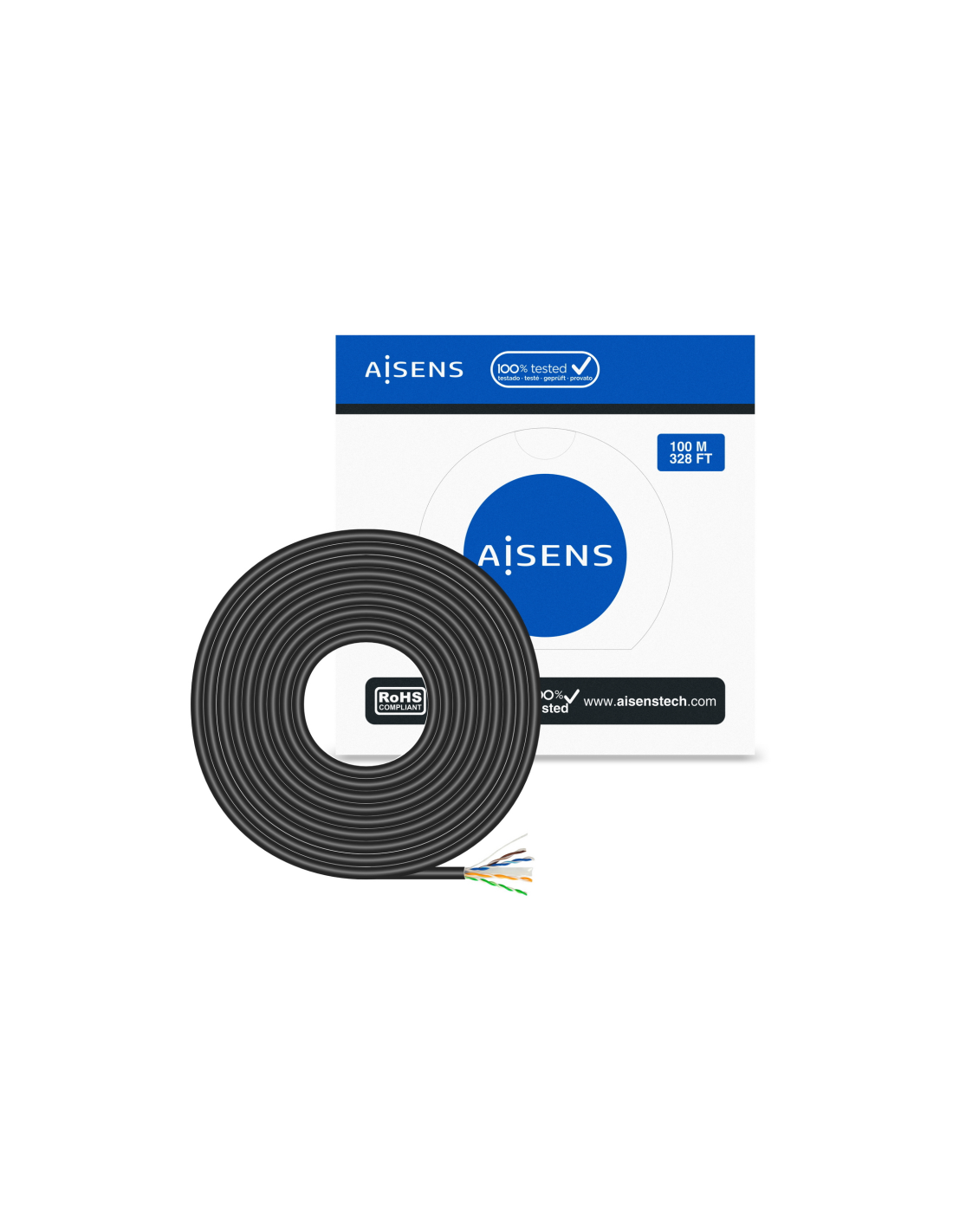 AISENS® – Cable de Red Exterior Impermeable RJ45 Cat.6 UTP Rígido CCA AWG23, Negro, 100M