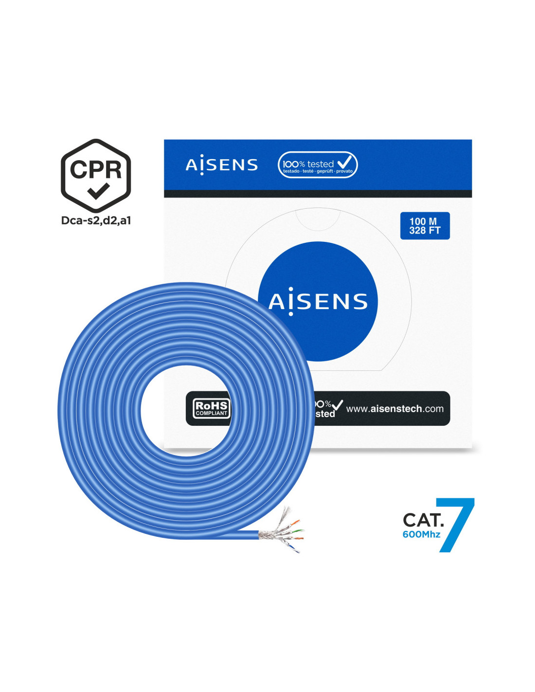 AISENS® – Bobina cable de red CPR Dca CAT.7 S/FTP PIMF AWG23 100% cobre.