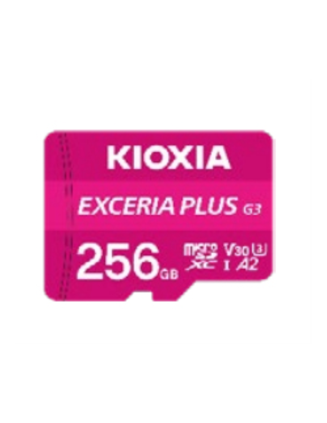 Kioxia EXCERIA PLUS G3. Capacidad: 256 GB, Tipo de tarjeta flash: MicroSDXC, Clase de memoria flash: Clase 10, Tipo de memoria interna: UHS-I, Velocidad de lectura: 210 MB/s, Velocidad de escritura: 150 MB/s, Clase de velocidad UHS: Class 3 (U3), Clase de velocidad de vídeo: V30. Funciones de protección: A prueba de golpes, Resistente al agua, Color del producto: Rosa