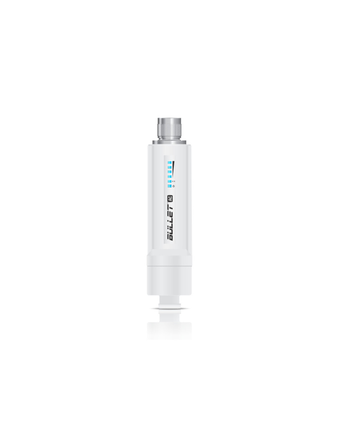 Ubiquiti B-DB-AC. Rango máximo de transferencia de datos: 300 Mbit/s, Ethernet LAN, velocidad de transferencia de datos: 1000 Mbit/s, Velocidad de transmisión de datos: 300 Mbit/s. Voltaje de entrada AC: 24 V, Corriente de entrada: 0.5 A, Consumo de energía (max): 8 W. Color del producto: Blanco, Indicadores LED: Red, Poder, Intensidad de señal. Tipo de conector de antena: Clase N. Sistema operativo instalado: AirOS