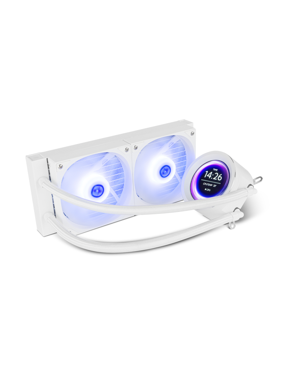 Hummer X-240 LCD es un kit de refrigeración líquida all in one fácil de instalar que ofrece un alto rendimiento con una baja sonoridad. Gracias a su radiador doble (277 x 120 x 27 mm) y sus ventiladores con función PWM que mantienen de manera eficaz la temperatura del ordenador. Además, incluye una pantalla LCD personalizable, que podrás configurar según los datos que necesites saber de tu configuración.