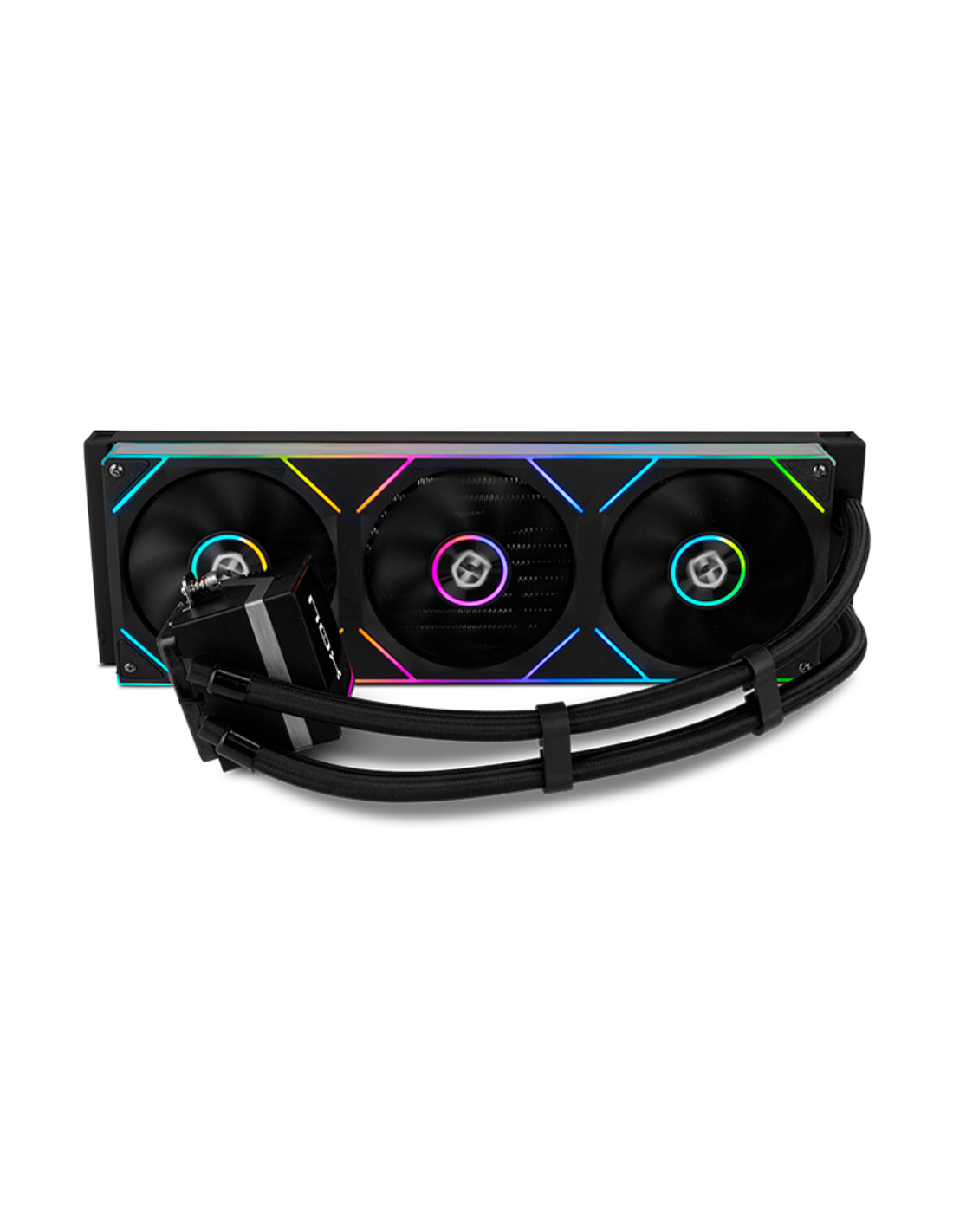Disponible en color negro y blanco, este sistema de refrigeración líquida de Nox está compuesta por tres ventiladores con rodamiento hidraúlico, radiador de 360 mm y aletas aerodinámicas que facilitan la reducción de turbulencias entre radiador y ventilador.