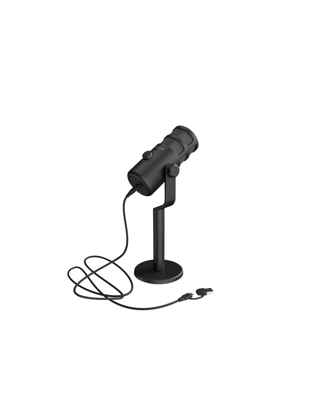 El micrófono GENESIS Radium 350D está listo para funcionar nada más sacarlo de la caja. Todo lo que tienes que hacer es colocarlo sobre tu escritorio, y luego conectarlo a tu ordenador mediante un cable USB-C (con adaptador USB-A). Si es necesario, puedes aumentar la altura del trípode con el cable alargador incluido. Tampoco hay nada que te impida fijar el GENESIS Radium 350D a un brazo de micrófono utilizando la rosca estándar de 5/8".