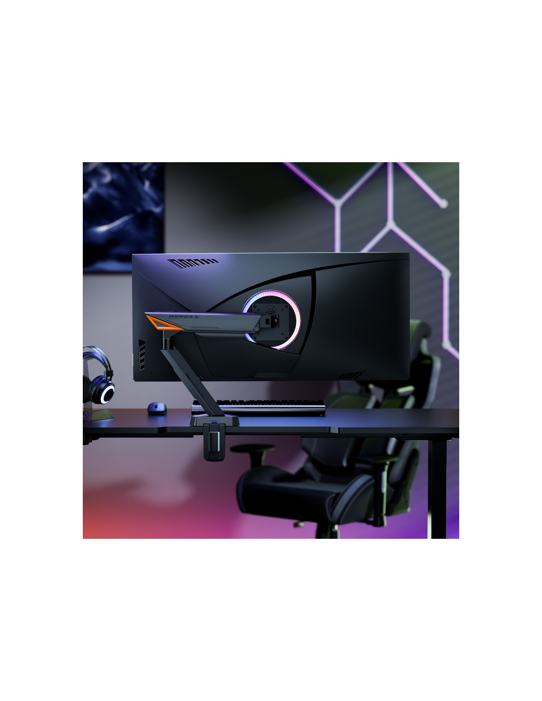 - Este soporte GAMING RGB incluye una iluminación RGB ambiental que mejora tu experiencia de juego. La luz ambiental puede crear un ambiente envolvente. Además de dar un toque moderno y vibrante a tu espacio, la iluminación mejora la inmersión en tus sesiones de juego.