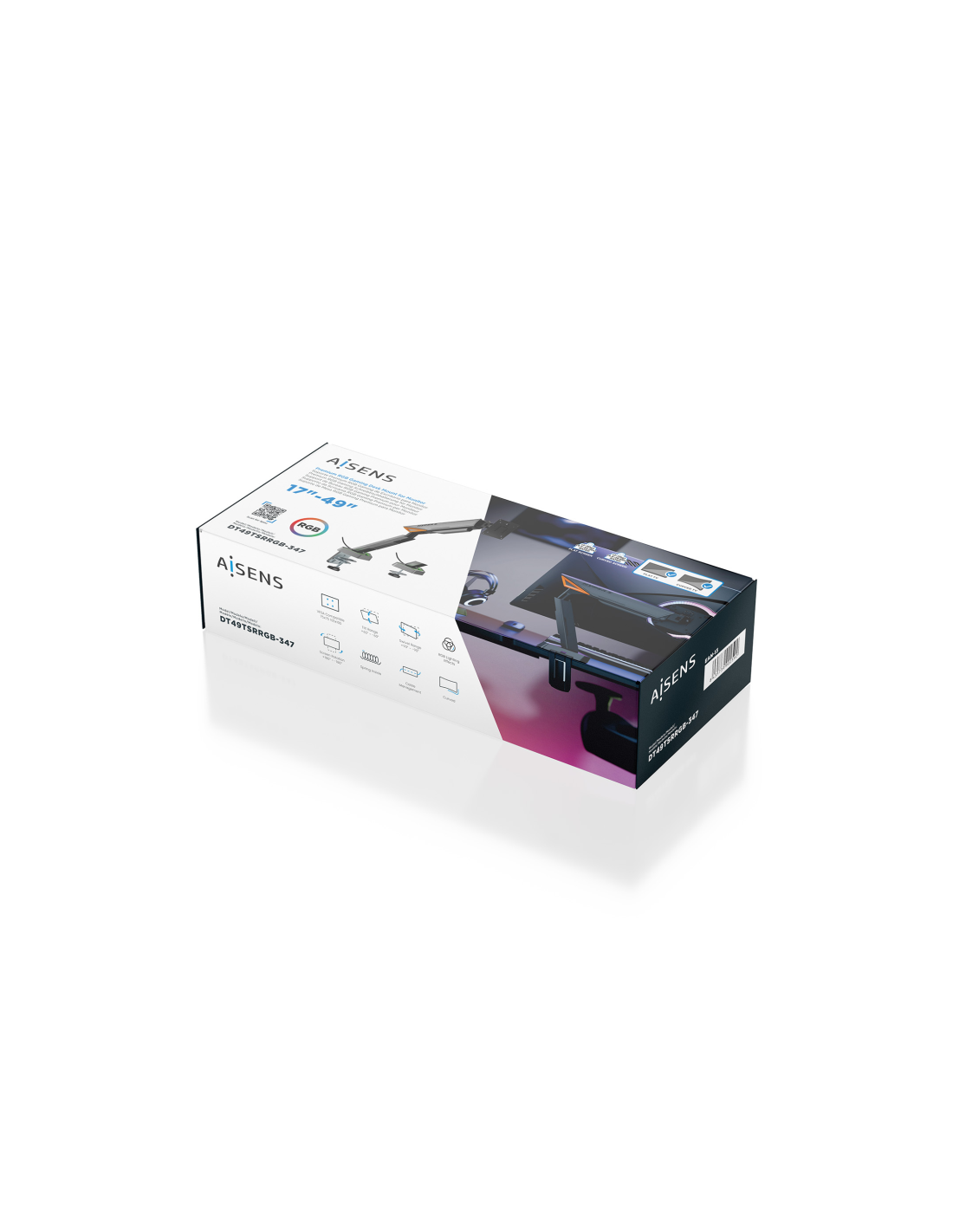AISENS DT49TSRRGB-347. Montaje: Abrazadera/Atornillado, Capacidad máxima de peso: 16 kg, Tamaño mínimo de pantalla: 43,2 cm (17"), Tamaño máximo de pantalla: 124,5 cm (49"), Compatibilidad con interfaz de montaje (min): 75 x 75 mm, Compatibilidad con interfaz de montaje (max): 100 x 100 mm. Ajustes de altura, Ángulo de inclinación: -60 - 60°. Color del producto: Negro, Gris
