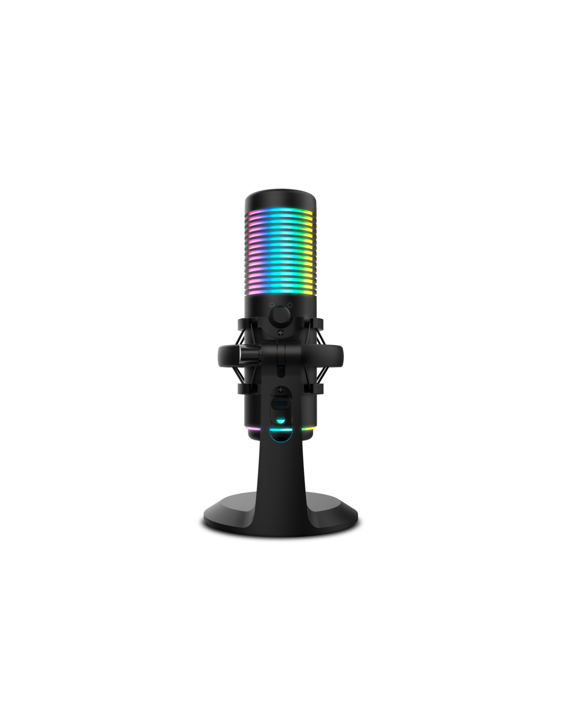 Kaze es un micrófono visualmente muy atractivo, con acabados en negro. Es un micrófono con un diseño innovador creado para darle un toque diferente a tu setup. Fabricado en metal, con montura antishock, es muy estable, lo que le permite adaptarse sin dificultad a distintas posiciones, ofreciendo una estética y unas prestaciones profesionales.