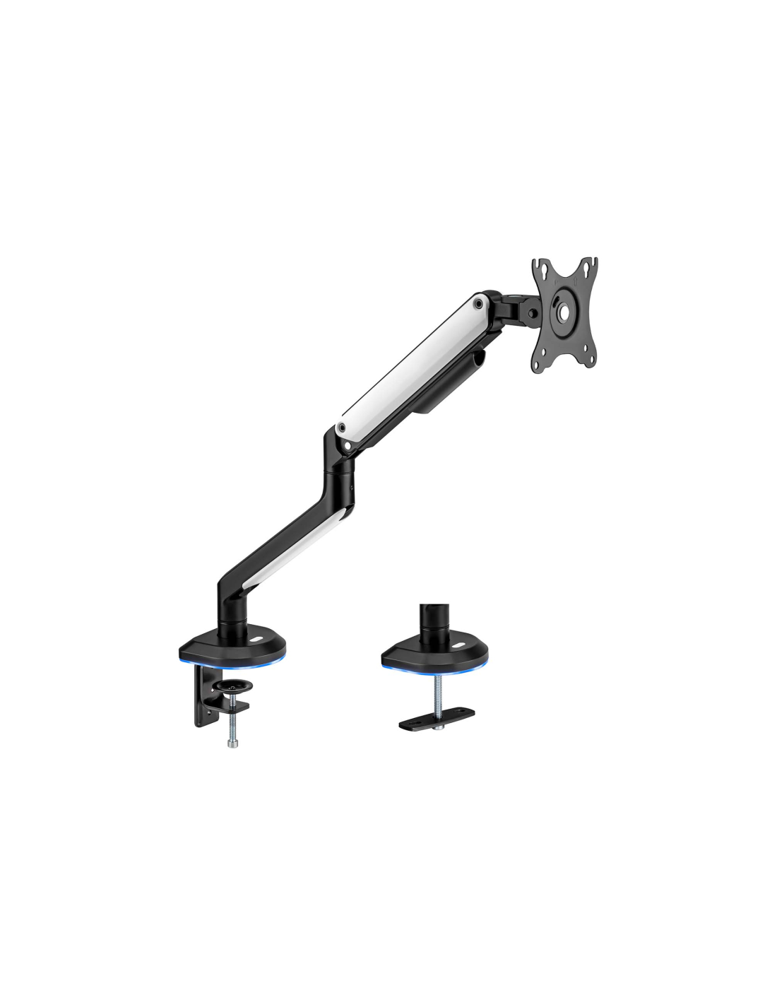 AISENS Soporte De Mesa RGB Gaming Contrapeso Giratorio E Inclinable Para Monitor/TV 9kg (3 Pivotes, 1 Brazo) De 17-32, Negro-Blanco. Montaje: Abrazadera/Atornillado, Capacidad máxima de peso: 9 kg, Tamaño mínimo de pantalla: 43,2 cm (17"), Tamaño máximo de pantalla: 81,3 cm (32"), Compatibilidad con interfaz de montaje (min): 75 x 75 mm, Compatibilidad con interfaz de montaje (max): 100 x 100 mm. Ajustes de altura, Ángulo de inclinación: -55 - 55°. Color del producto: Negro, Blanco