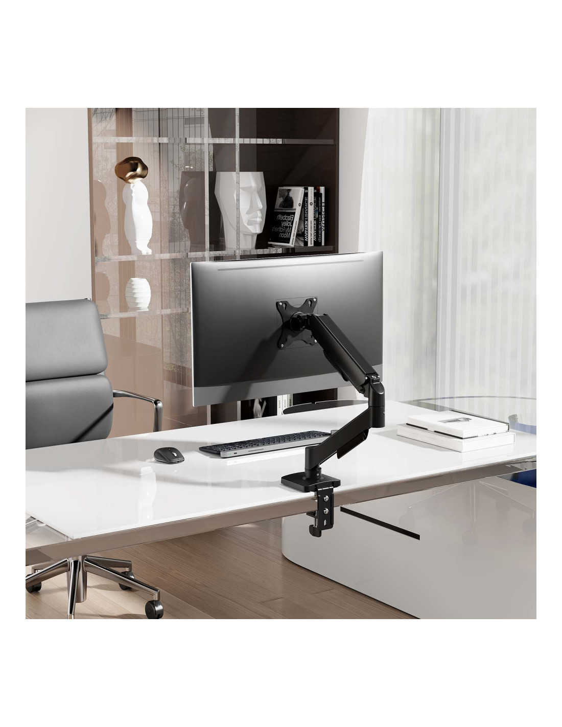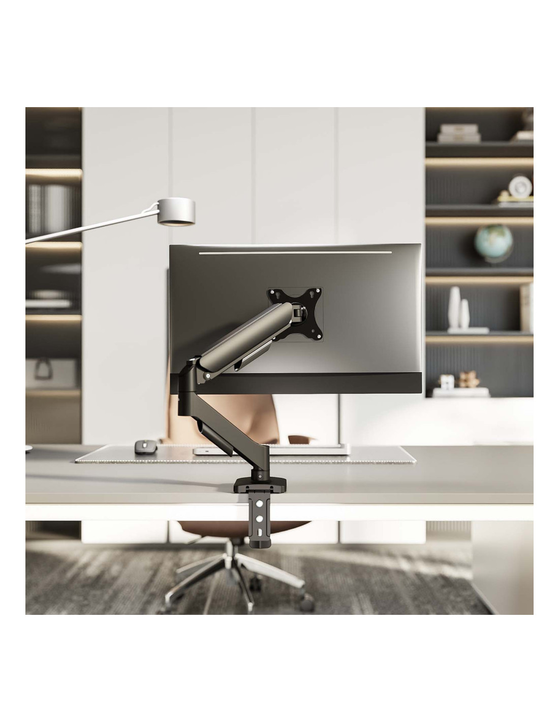 - Brazo articulado con muelle para un ajuste fácil y cómodo.
