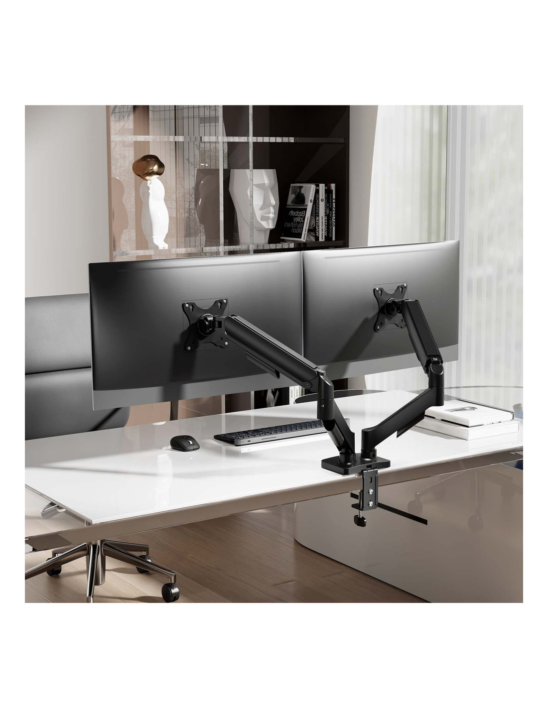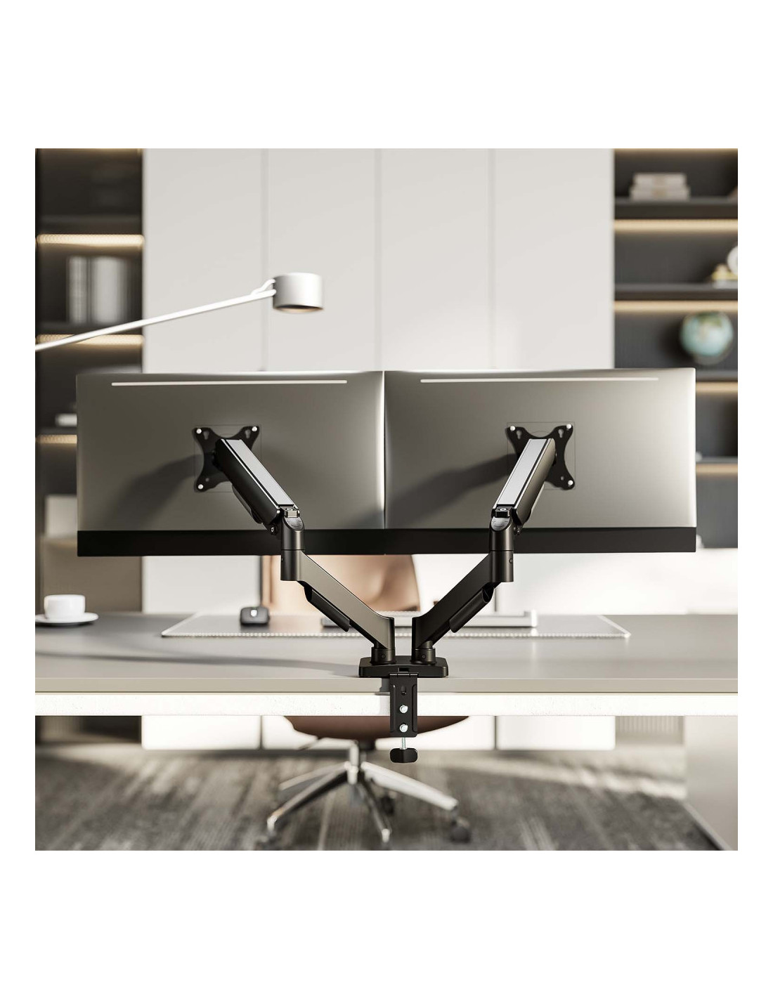 - Soporte de mesa profesional contrapeso giratorio e inclinable para monitor/TV (3 pivotes, 2 brazos) de 17”-32”