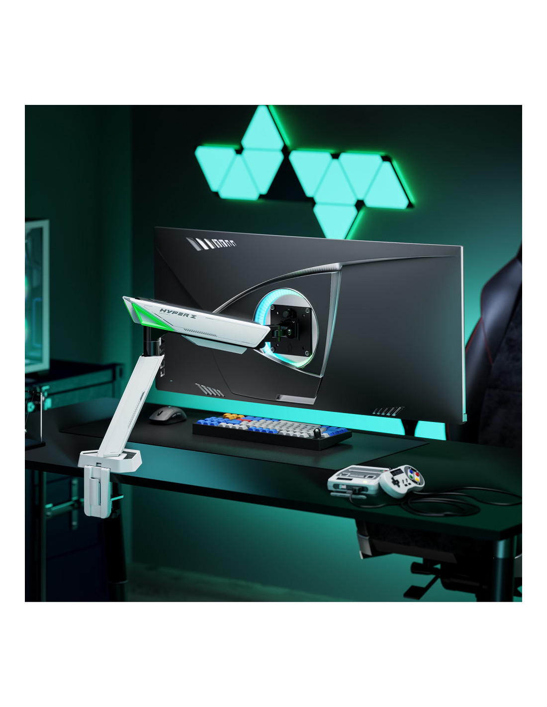 - Soporte de mesa gaming contrapeso giratorio e inclinable para monitor/TV (3 pivotes, 1 brazo) de 17”-49”