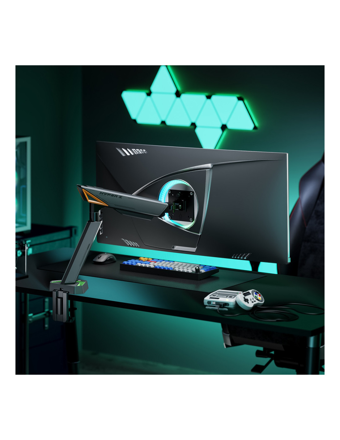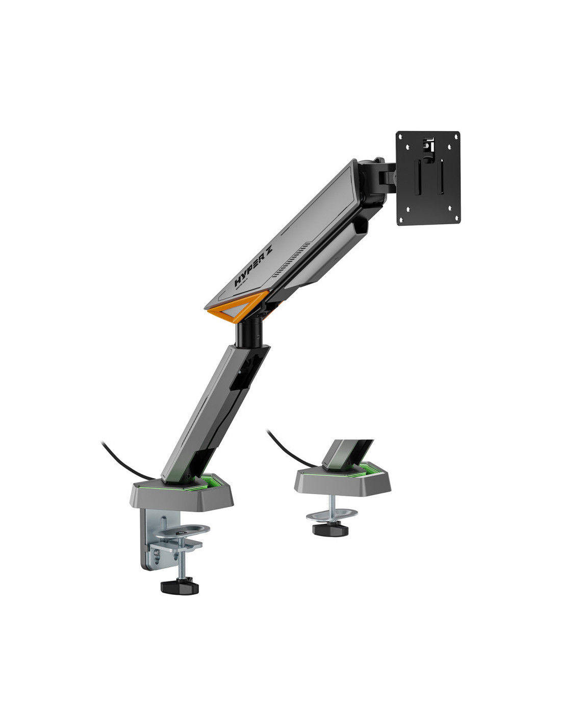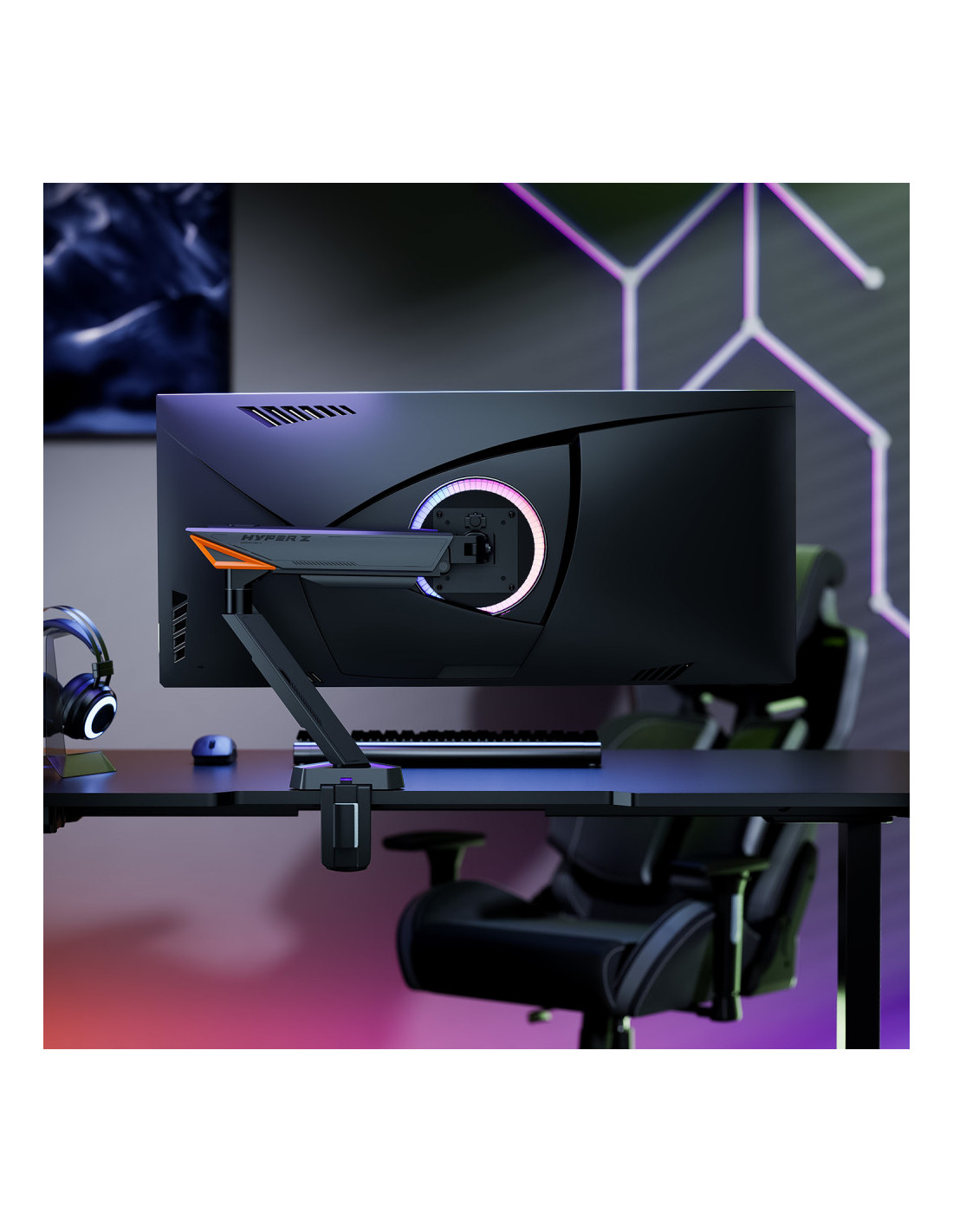 - Soporte de mesa RGB gaming contrapeso giratorio e inclinable para monitor/TV (3 pivotes, 1 brazo) de 17”-49”