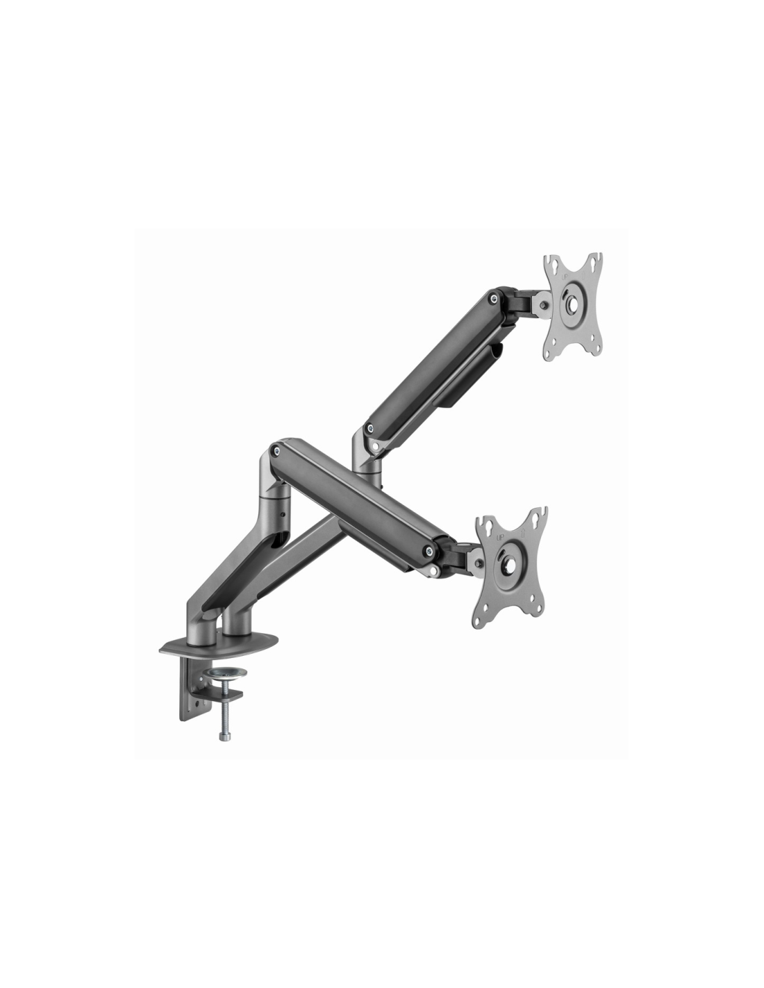 Gembird MA-DA2-05. Montaje: Pinza/Atornillado, Capacidad máxima de peso: 18 kg, Tamaño mínimo de pantalla: 43,2 cm (17"), Tamaño máximo de pantalla: 81,3 cm (32"), Compatibilidad con interfaz de montaje (min): 75 x 75 mm, Compatibilidad con interfaz de montaje (max): 100 x 100 mm. Ángulo de giro (alcance): -90 - 90°, Ángulo de inclinación: -55 - 55°. Color del producto: Gris