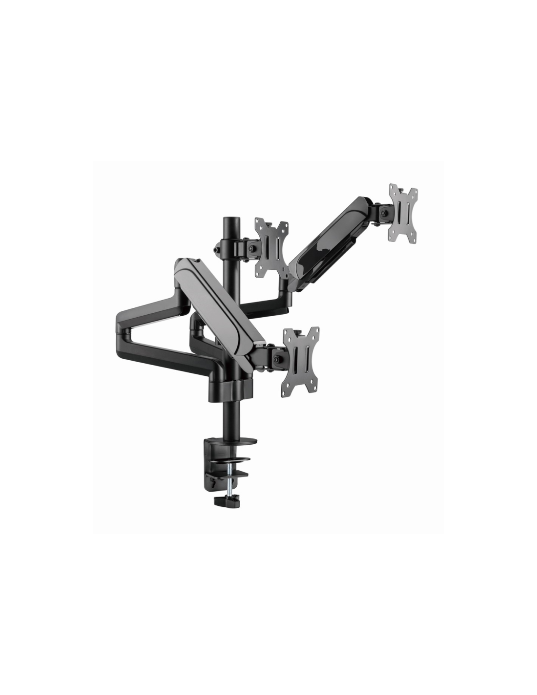Gembird MA-DA3-01. Montaje: Pinza/Atornillado, Capacidad máxima de peso: 21 kg, Tamaño mínimo de pantalla: 43,2 cm (17"), Tamaño máximo de pantalla: 68,6 cm (27"), Compatibilidad con interfaz de montaje (min): 75 x 75 mm, Compatibilidad con interfaz de montaje (max): 100 x 100 mm. Ajustes de altura, Ángulo de giro (alcance): -90 - 90°, Ángulo de inclinación: -35 - 35°. Color del producto: Negro