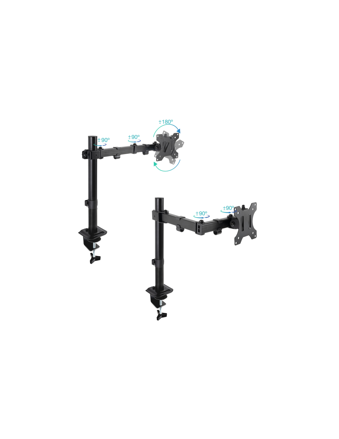 Con capacidad de rotación, giro e inclinación, este soporte te brinda un abanico de posibilidades para que puedas modificar la posición de la pantalla a tu gusto. Y, por si fuera poco, cuenta con dos brazos articulados para duplicar su potencial.