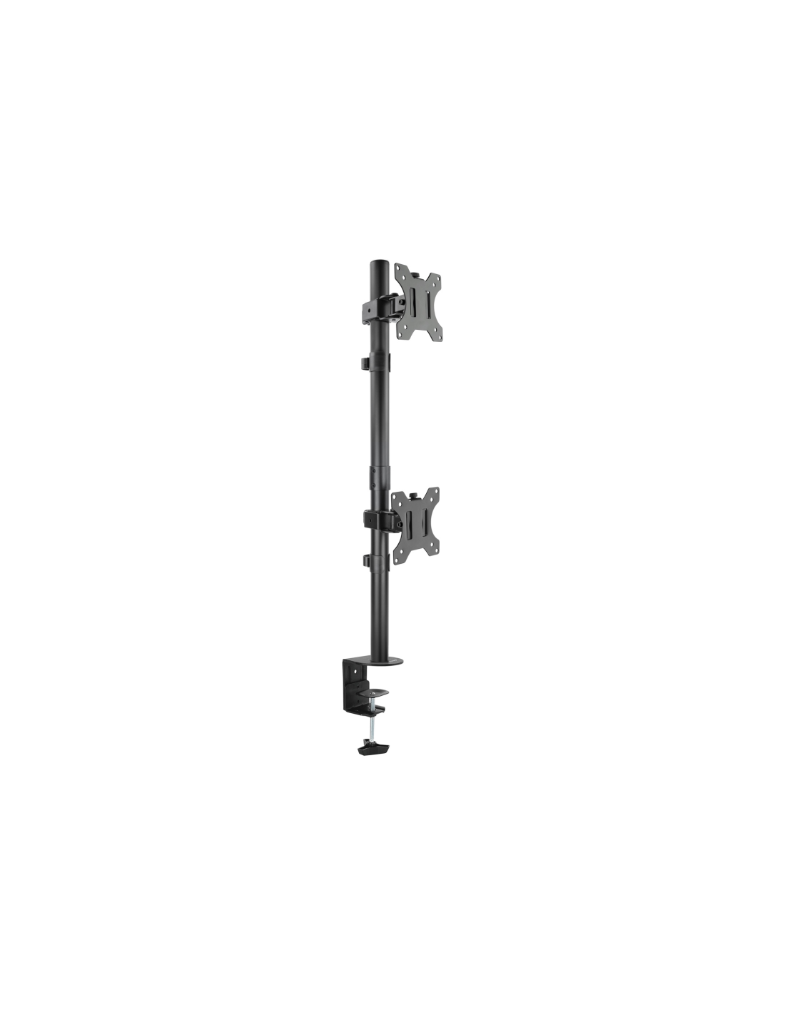 TooQ Soporte de Mesa, Giratorio e Inclinable, Vertical, para 2 Pantallas 13”-32”, Negro. Montaje: Abrazadera/Atornillado, Capacidad máxima de peso: 16 kg, Tamaño mínimo de pantalla: 33 cm (13"), Tamaño máximo de pantalla: 81,3 cm (32"), Compatibilidad con interfaz de montaje (min): 75 x 75 mm, Compatibilidad con interfaz de montaje (max): 100 x 100 mm. Ajustes de altura, Ángulo de giro (alcance): -90 - 90°, Ángulo de inclinación: -45 - 45°. Color del producto: Negro