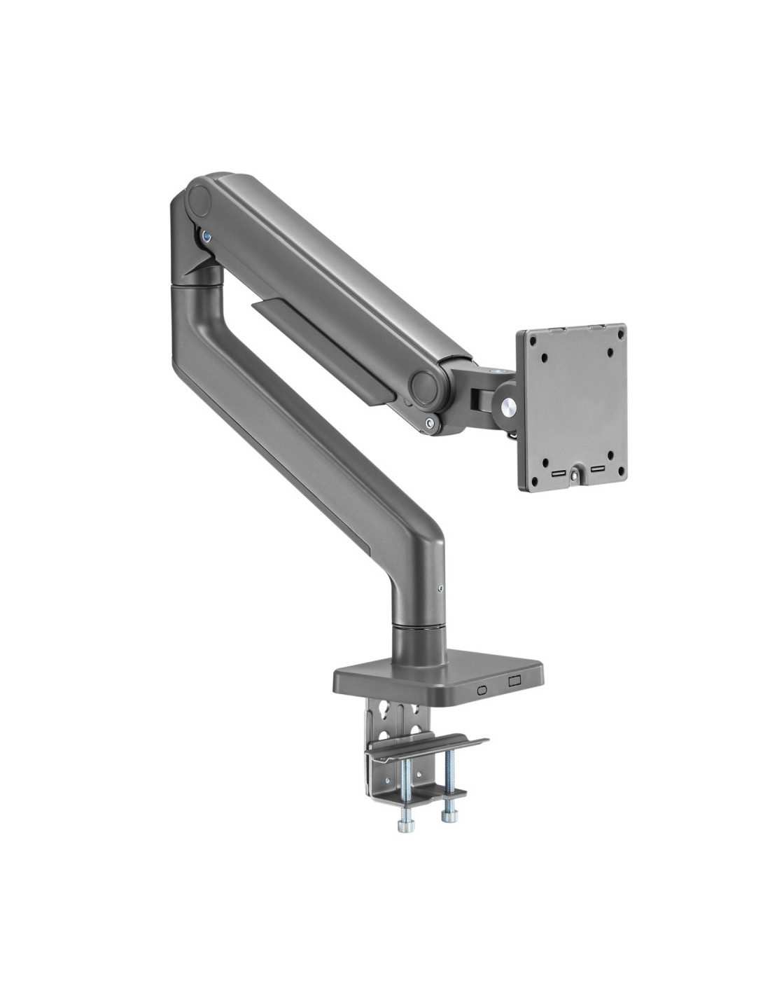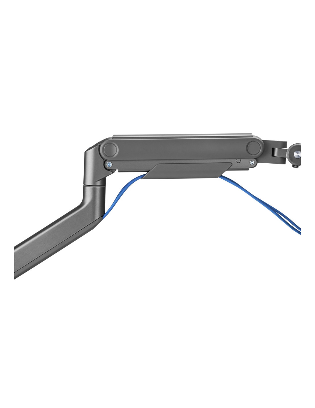 La estructura optimizada de la cabeza inclinable ofrece ajustes suaves con un rango de inclinación de +90° a -90°, giro de 180° y rotación de 360°. Con 536mm de ajuste de altura suave utilizando la elevación mecánica de resorte, este brazo de monitor individual ofrece la máxima flexibilidad para adaptarse a sus preferencias de visualización.