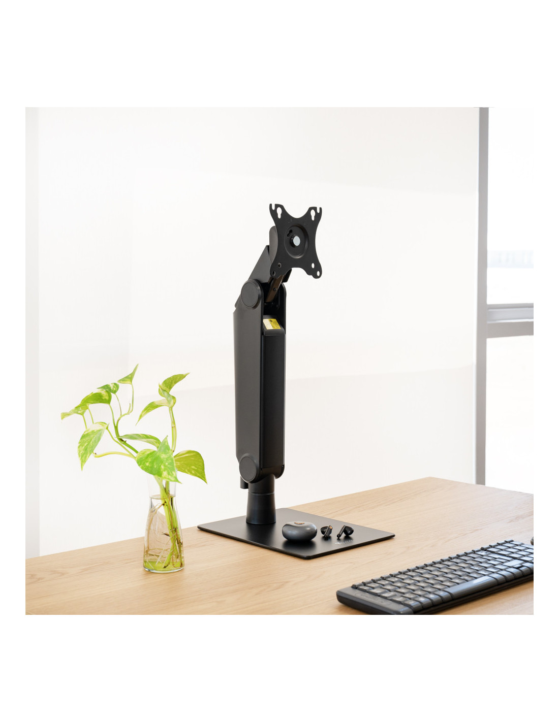 Diseñado para quienes buscan precisión y movimiento sin esfuerzo, este soporte convierte tu escritorio en un espacio versátil y ordenado. Su estructura sólida y su ajuste fluido permiten que la pantalla flote con elegancia, adaptándose a cada tarea, cada ángulo y cada día.