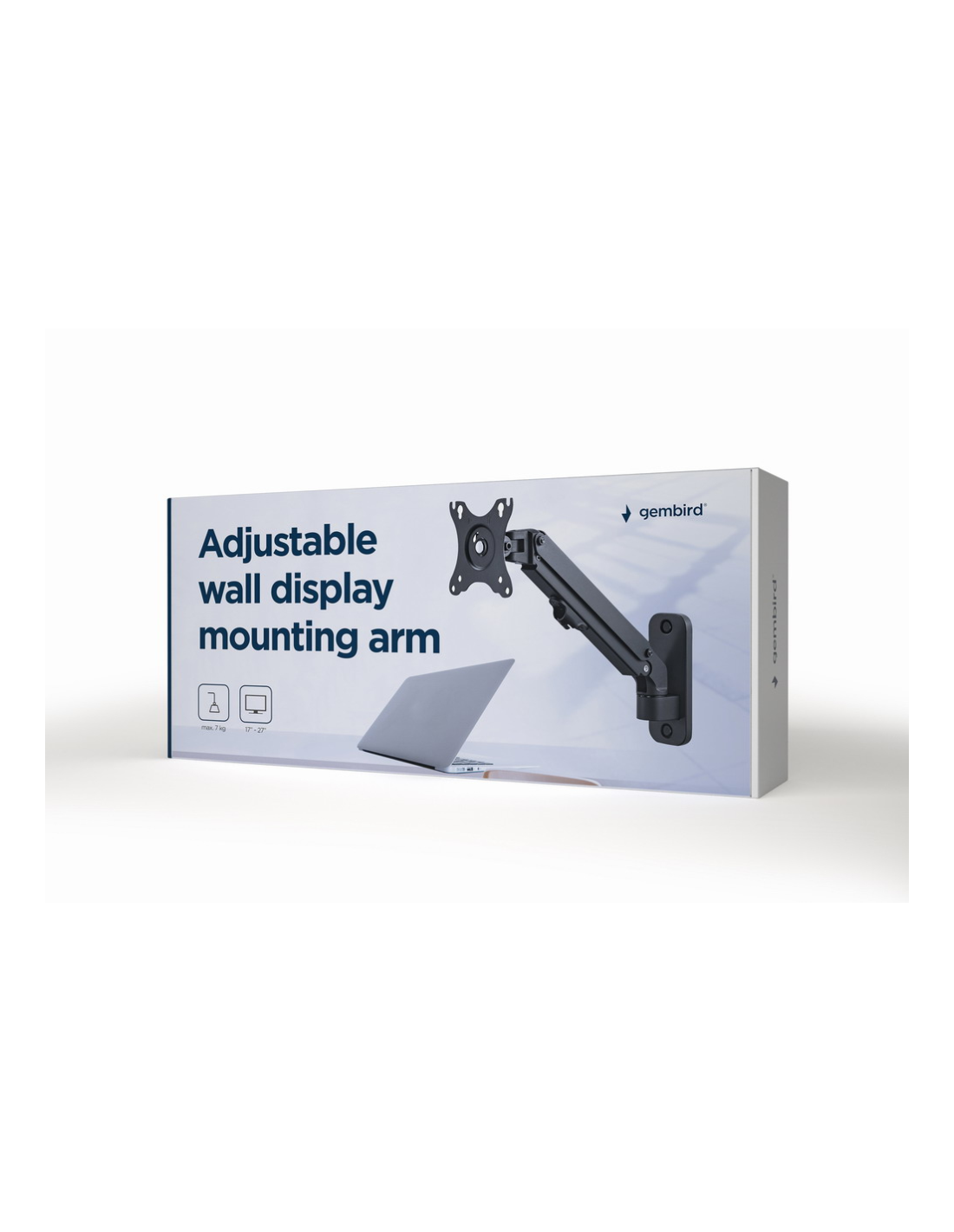 Gembird MA-WA1-01. Montaje: Tornillos, Capacidad máxima de peso: 7 kg, Tamaño mínimo de pantalla: 43,2 cm (17"), Tamaño máximo de pantalla: 68,6 cm (27"), Compatibilidad con interfaz de montaje (min): 75 x 75 mm, Compatibilidad con interfaz de montaje (max): 100 x 100 mm. Ángulo de giro (alcance): -90 - 90°, Ángulo de inclinación: -45 - 90°. Color del producto: Negro