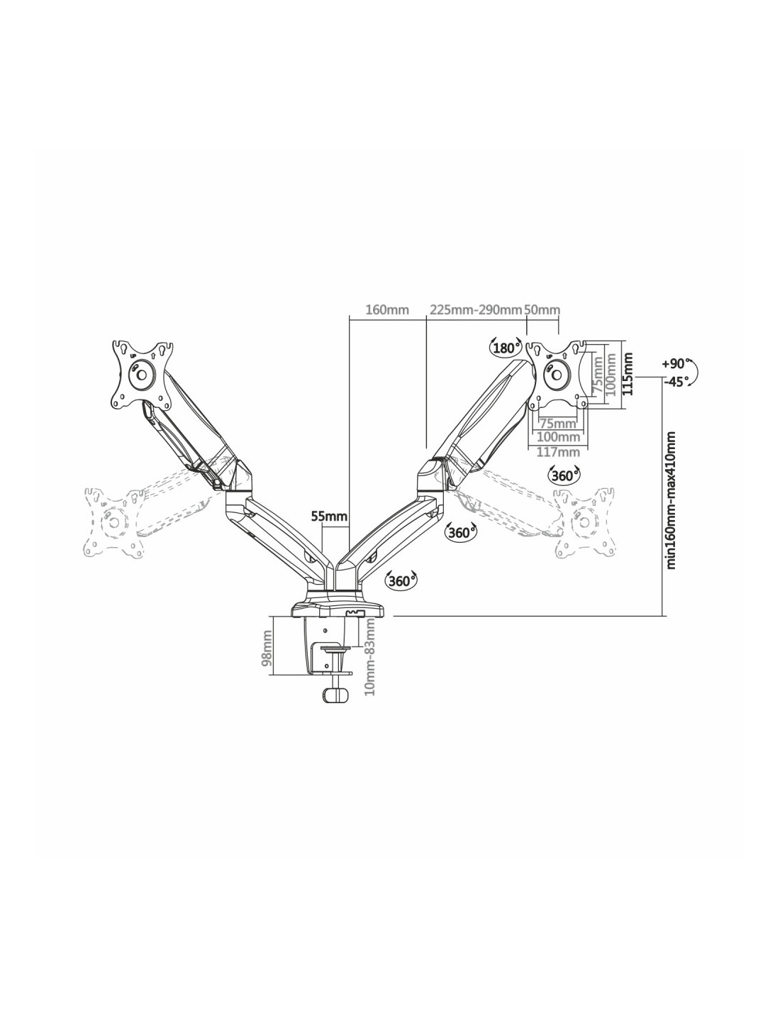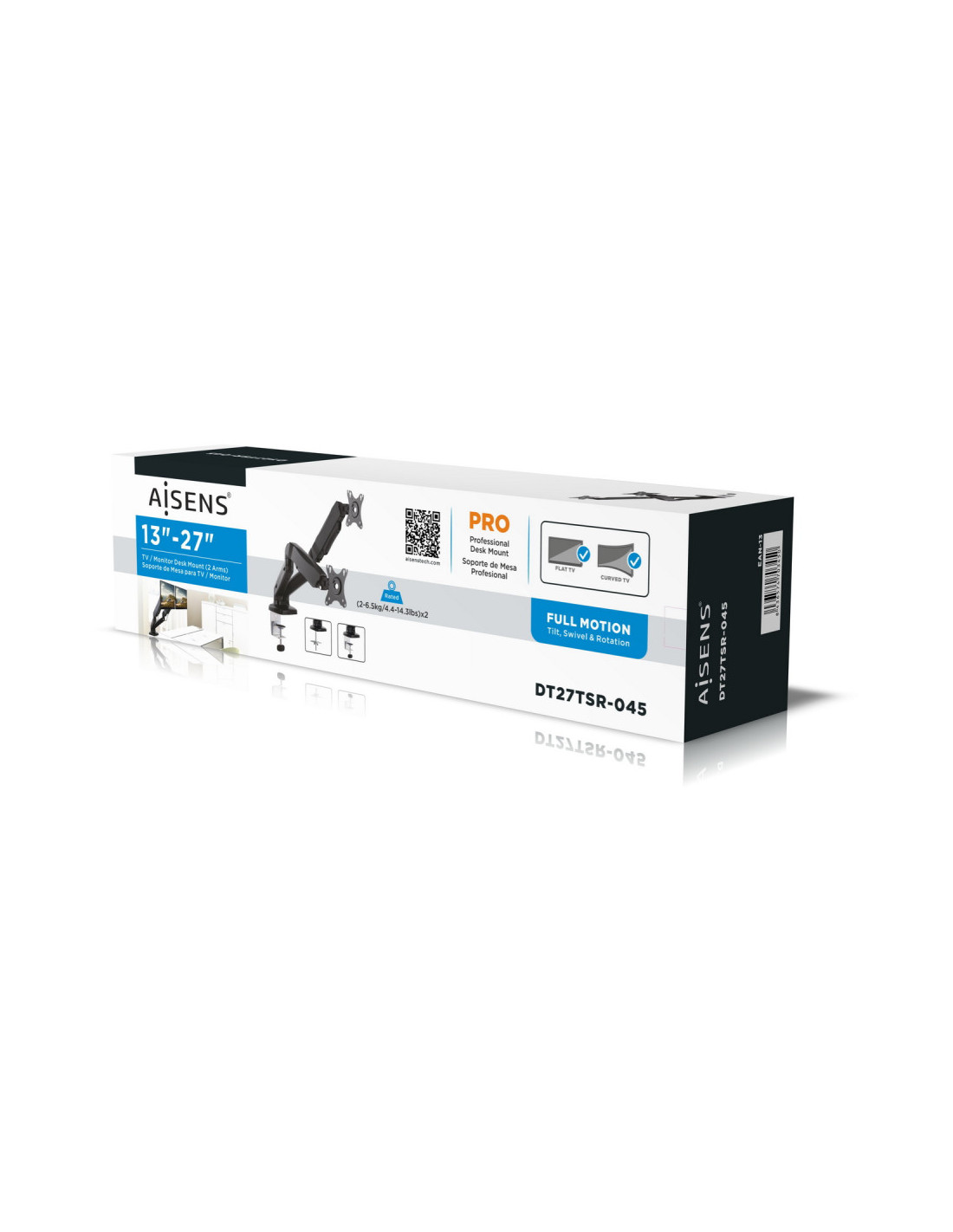 AISENS® – Soporte de mesa contrapeso giratorio e inclinable para monitor (3 pivotes, 2 brazos) de 13”-32”.Fabricado con aluminio de alta resistencia y pintado con pintura electrostática para un acabado perfecto