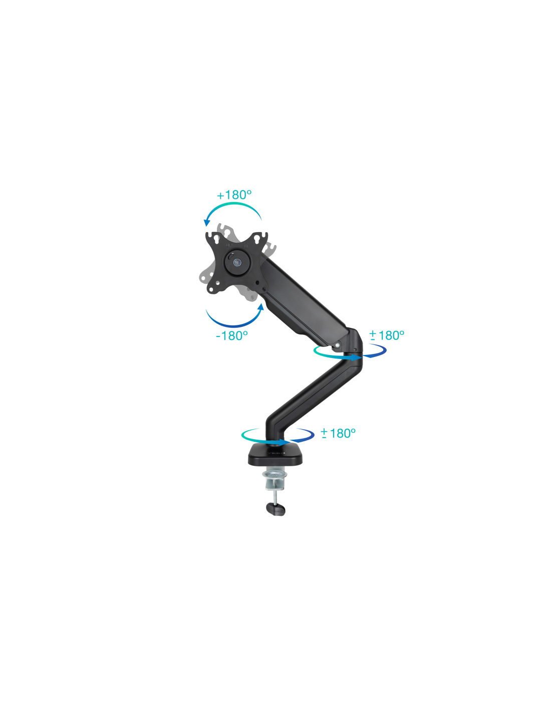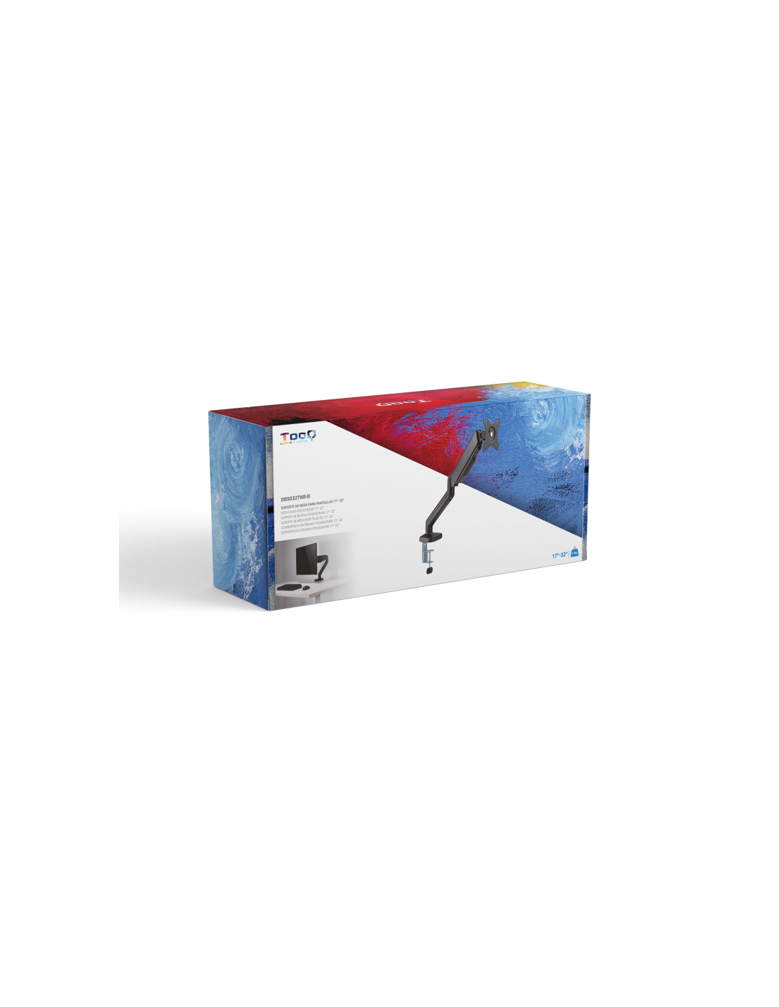 TooQ Soporte de Mesa para Pantalla 17"-32", Negro. Montaje: Abrazadera/Atornillado, Capacidad máxima de peso: 9 kg, Tamaño mínimo de pantalla: 43,2 cm (17"), Tamaño máximo de pantalla: 81,3 cm (32"), Compatibilidad con interfaz de montaje (min): 75 x 75 mm, Compatibilidad con interfaz de montaje (max): 100 x 100 mm. Ajustes de altura, Ángulo de giro (alcance): -90 - 90°, Ángulo de inclinación: -90 - 90°. Color del producto: Negro
