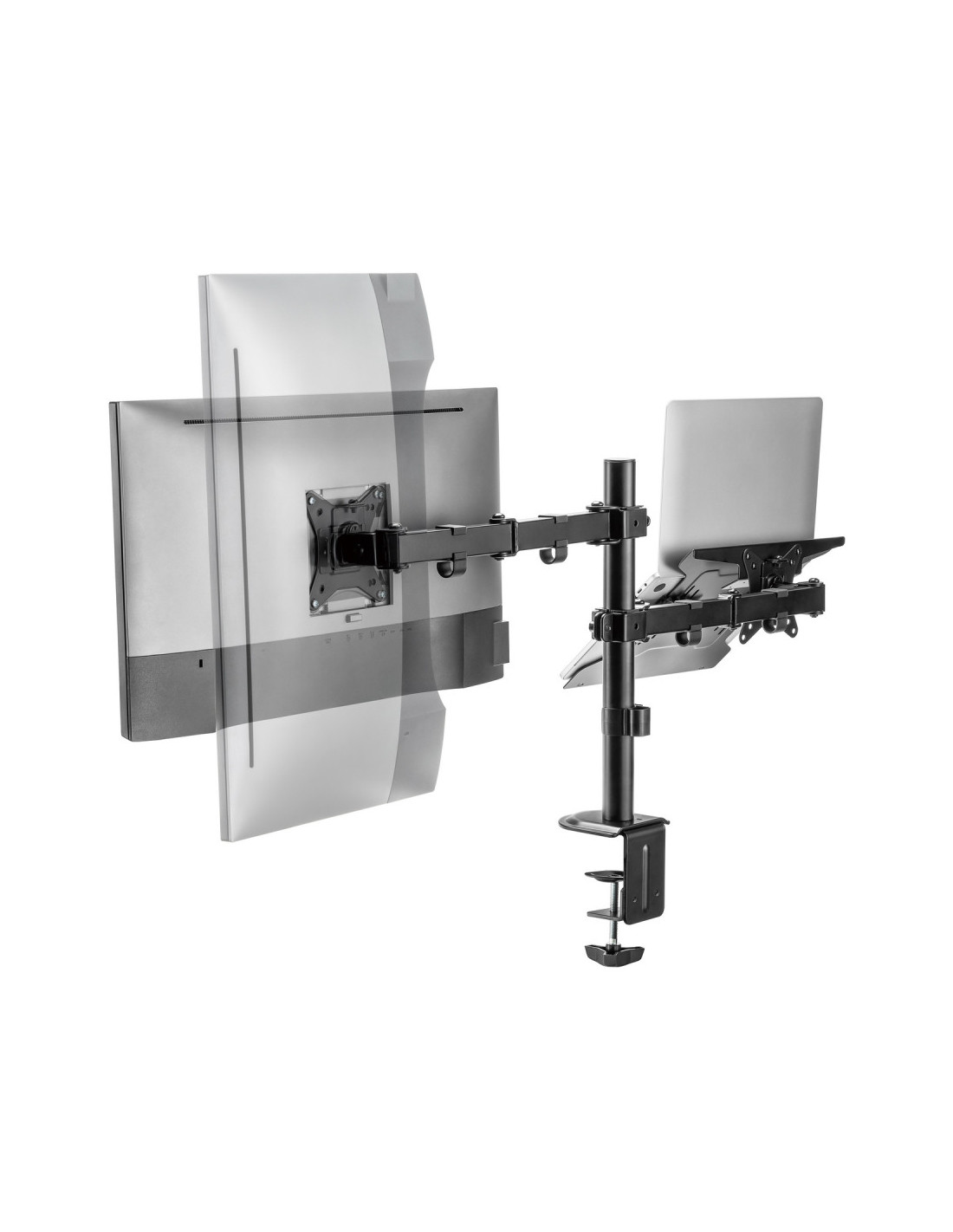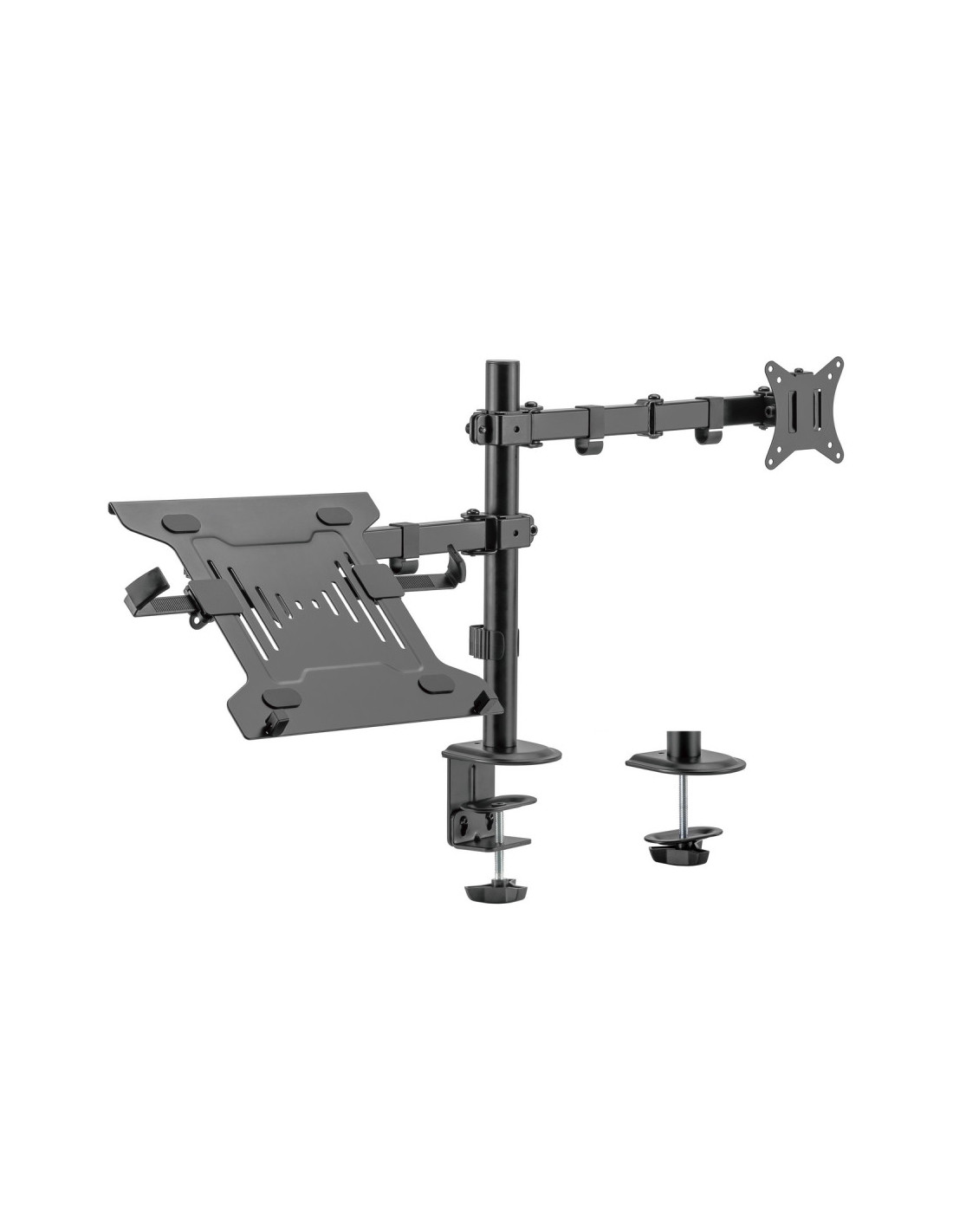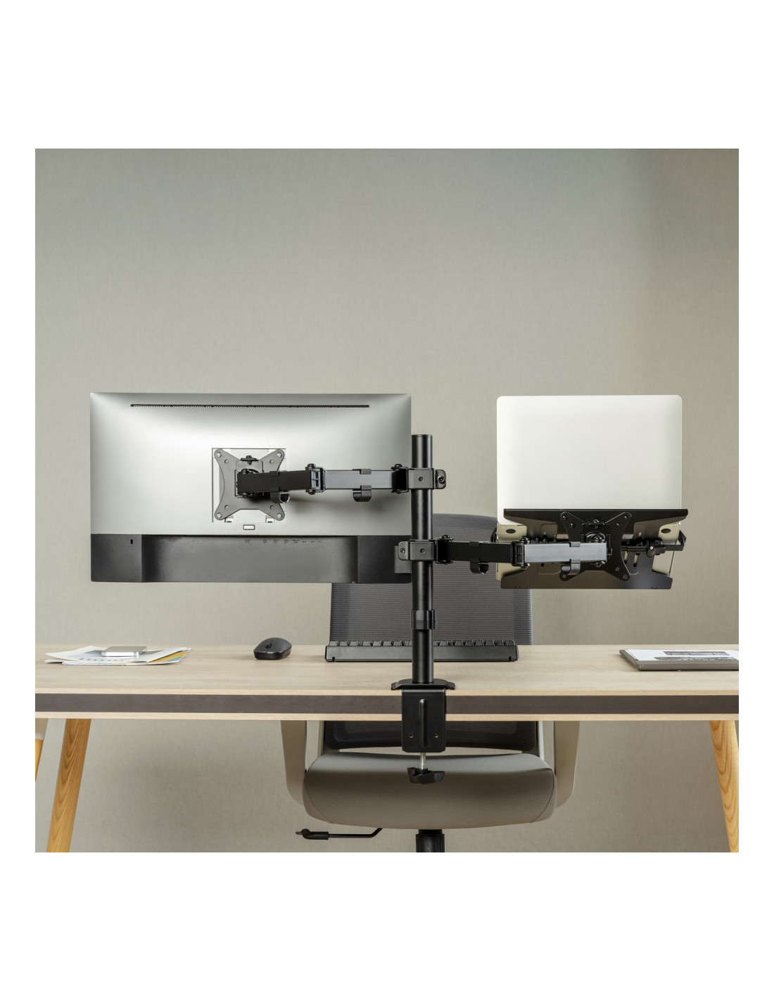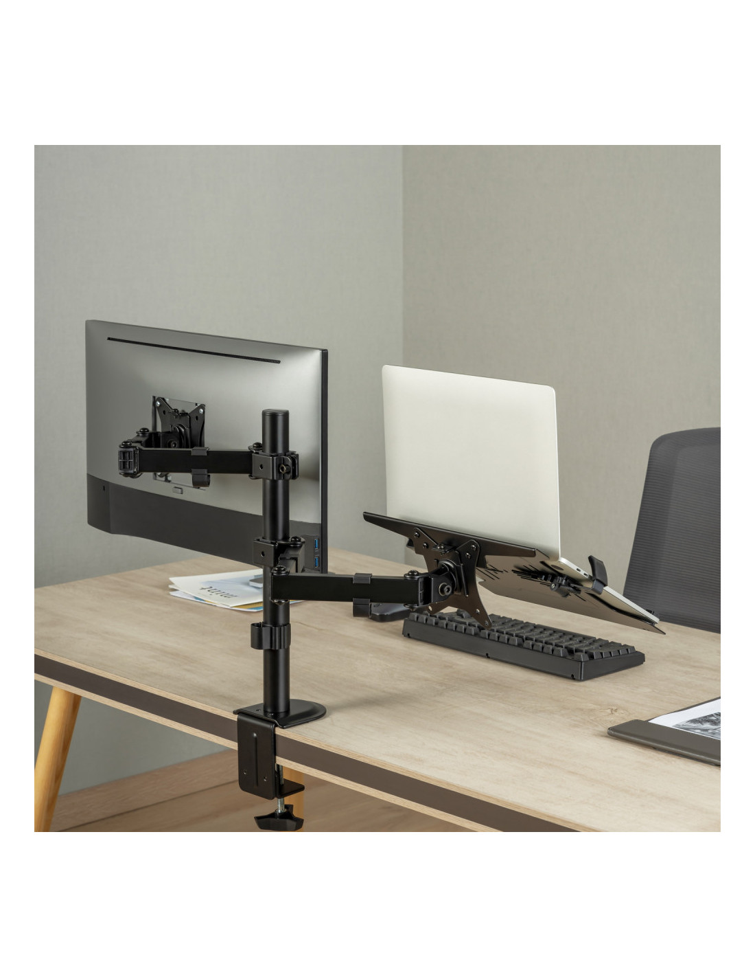 AISENS® – Soporte de mesa giratorio e inclinable para portátil y monitor/TV (3 pivotes, 2 brazos) de 17”-32”