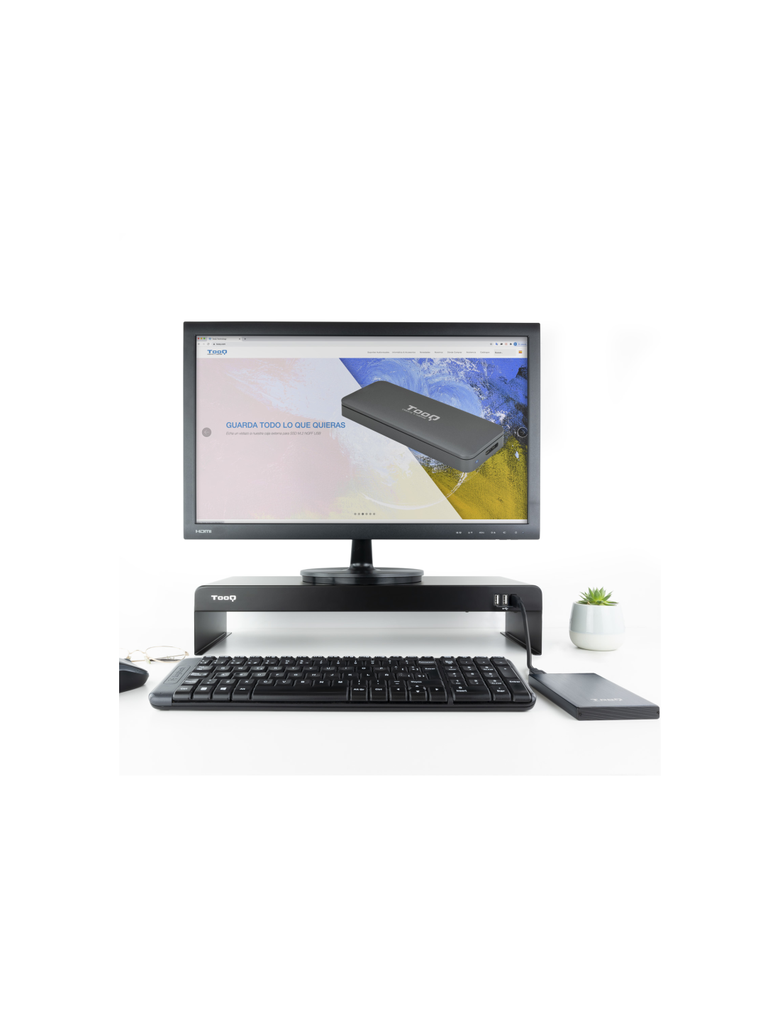 Soporte elevador para monitor/portátil con 3 puertos USB