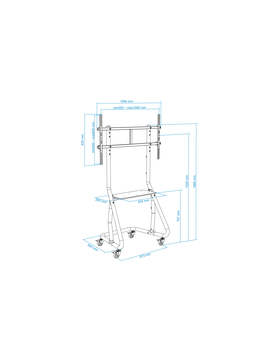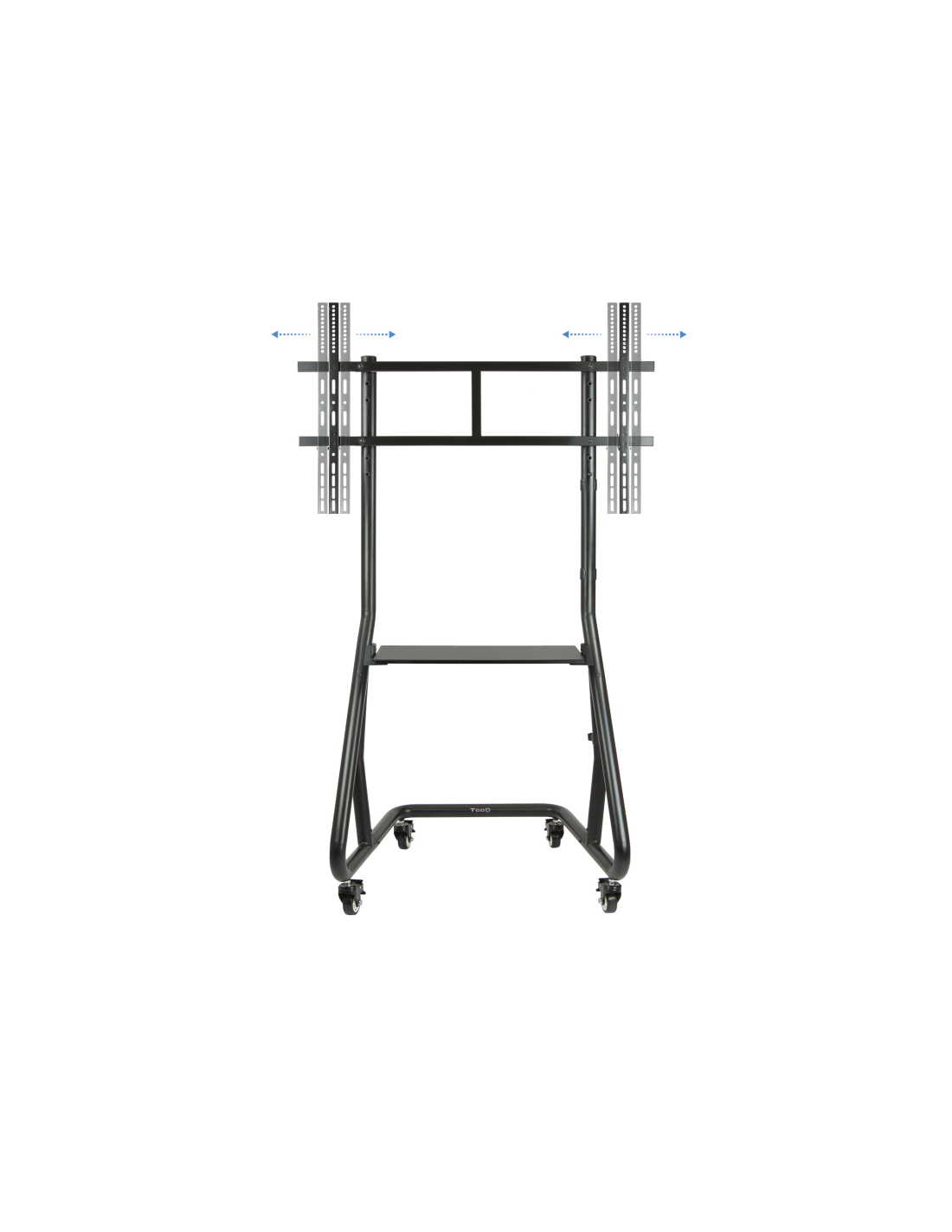 TooQ FS20200M-B Soporte de suelo con ruedas/patas para pantallas de 60" - 105". Capacidad máxima de peso: 100 kg, Tamaño mínimo de pantalla: 152,4 cm (60"), Tamaño máximo de pantalla: 2,67 m (105"), Compatibilidad con interfaz de montaje (min): 400 x 400 mm, Compatibilidad con interfaz de montaje (max): 1000 x 600 mm. Ajustes de altura. Color del producto: Negro