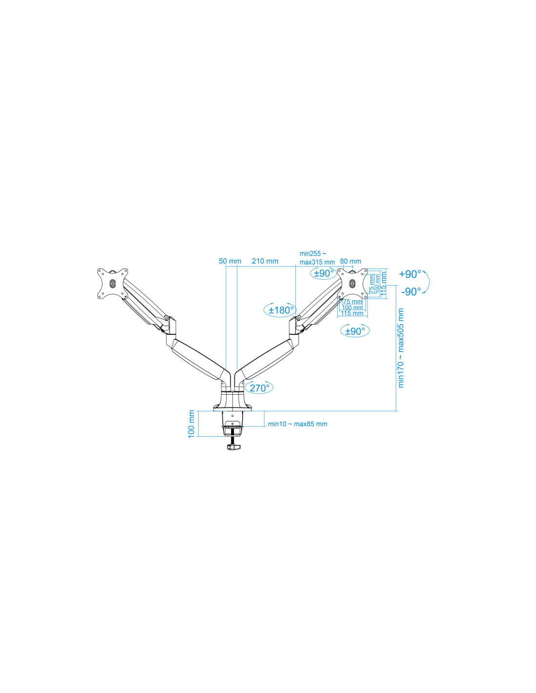 - Soporte de mesa orientable para 2 pantallas (monitor / plasma / LCD / LED) de entre 13" a 32" (depende de la instalación y del espacio disponible) con 3 puntos de giro