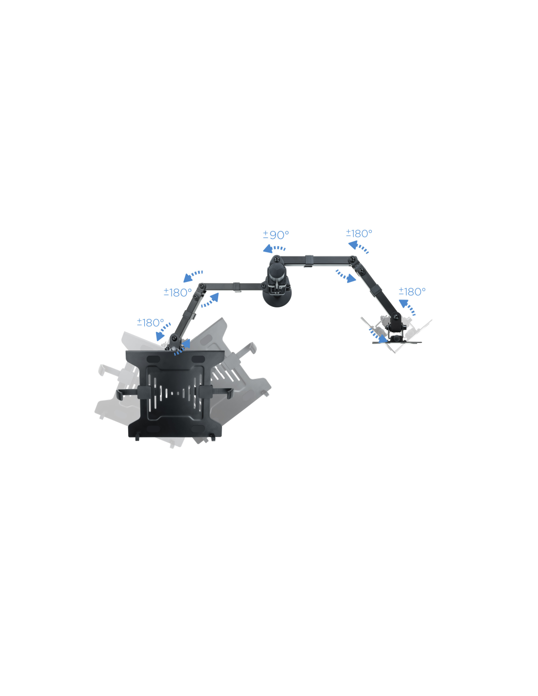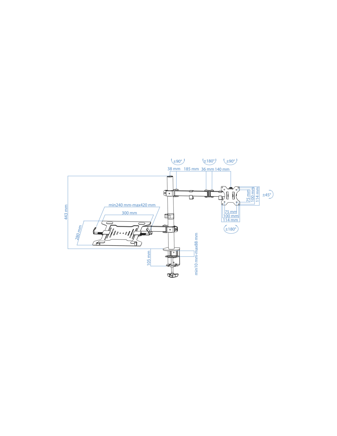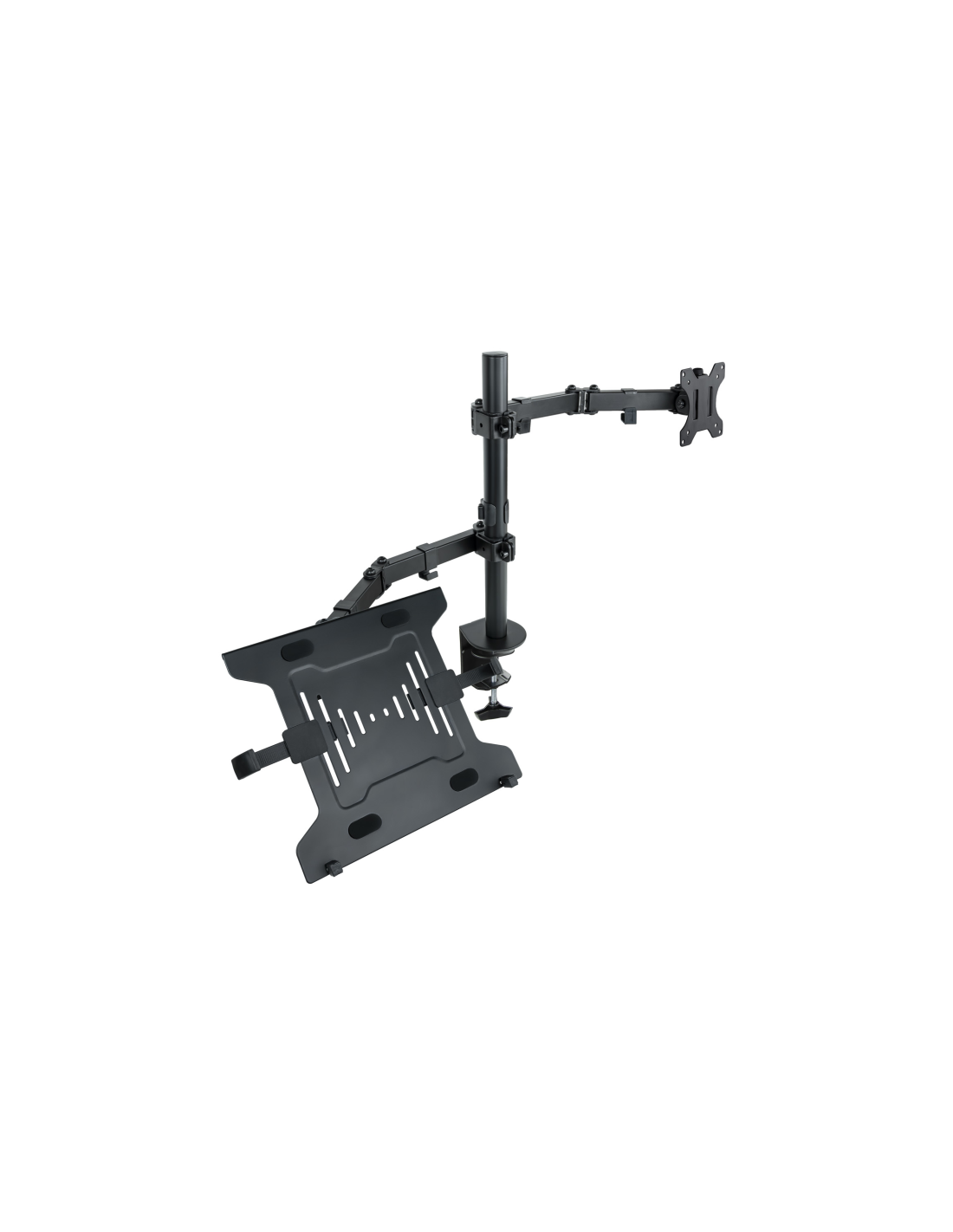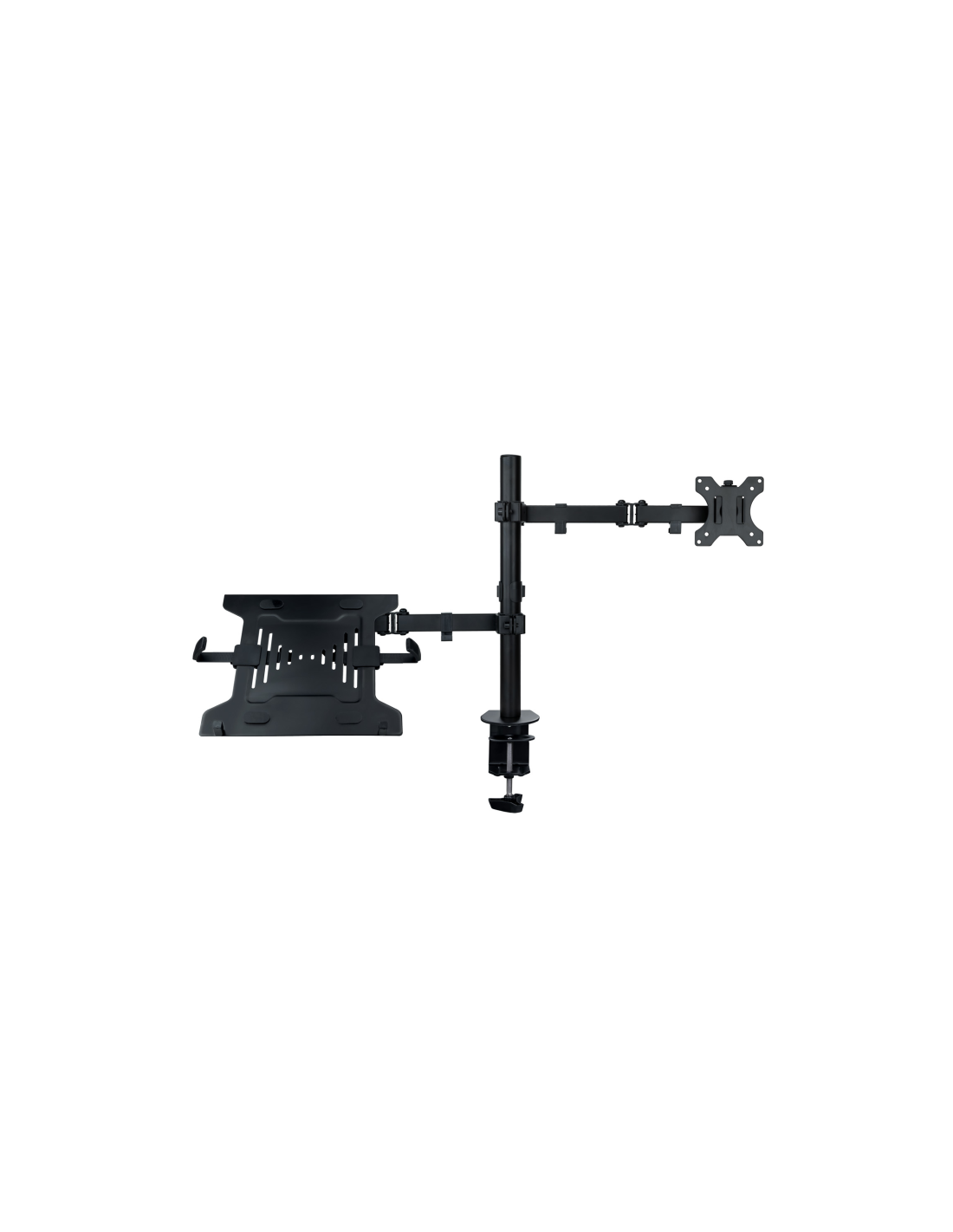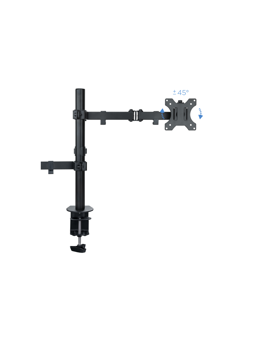 TooQ Soporte de mesa para pantalla 13"-32" y portátil. Montaje: Abrazadera/Atornillado, Capacidad máxima de peso: 12,5 kg, Tamaño mínimo de pantalla: 33 cm (13"), Tamaño máximo de pantalla: 81,3 cm (32"), Compatibilidad con interfaz de montaje (min): 75 x 75 mm, Compatibilidad con interfaz de montaje (max): 100 x 100 mm. Ajustes de altura, Ángulo de giro (alcance): -90 - 90°, Ángulo de inclinación: -45 - 45°. Color del producto: Negro